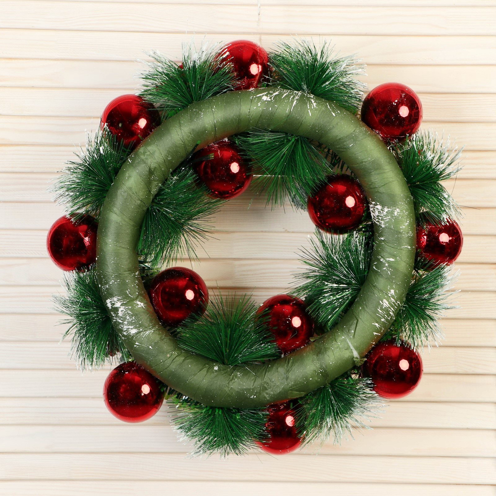 Венок новогодний d=34 см "Зимнее волшебство. Уютная сказка" листья в снегу, шарики, яблоки, 34х34х34 см., Зимнее волшебство, Китай