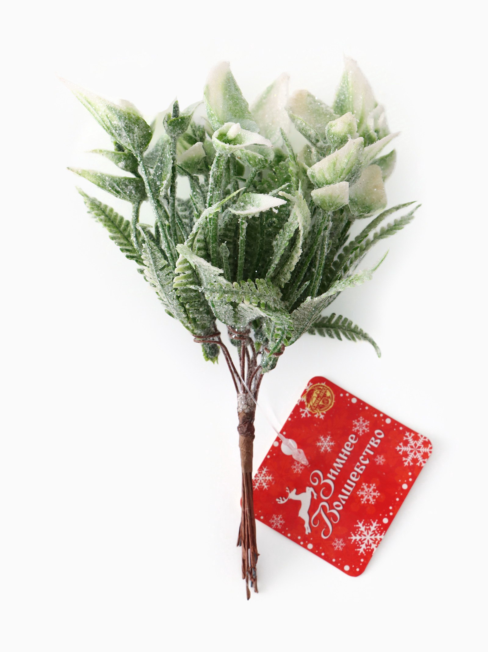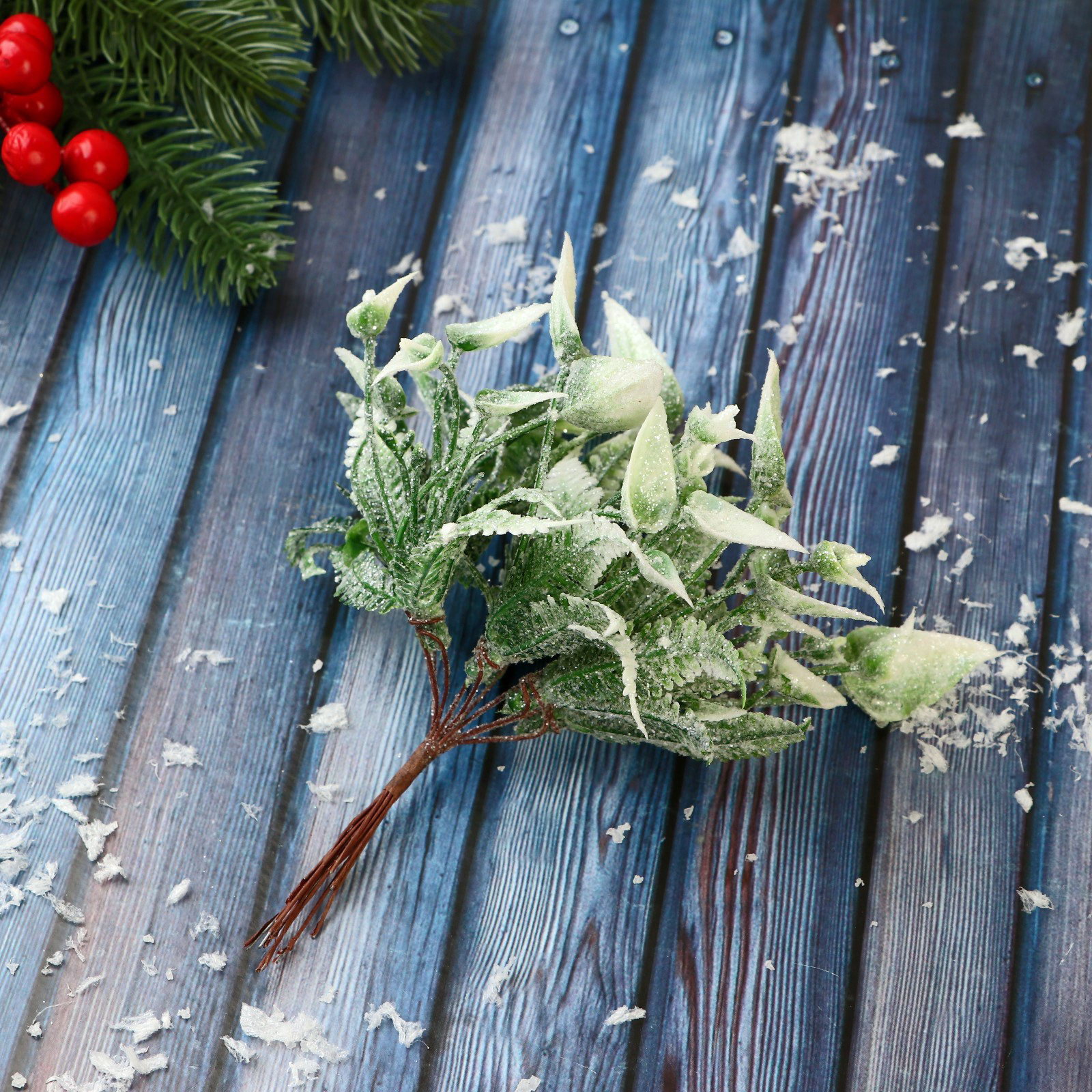 Еловая ветка декоративная "Зимнее волшебство. Сальвия блеск", 13 см, 13 см., Зимнее волшебство, Китай