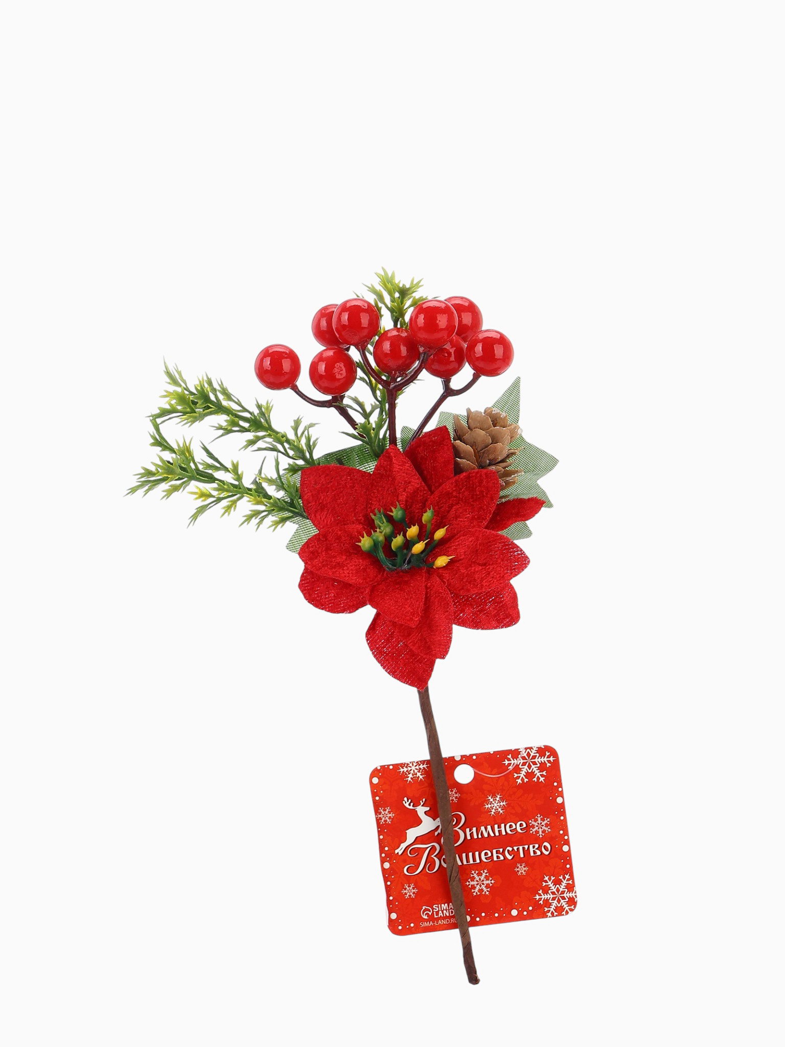 Эта ветка станет ярким акцентом в зимнем декоре, добавляя праздничного настроения и волшебства. Ее можно использовать как самостоятельный декоративный элемент или в составе праздничных композиций. Простая в использовании и аккуратная по исполнению, она поможет создать атмосферу настоящего зимнего волшебства дома или в офисе, делая праздник более запоминающимся и уютным. | ||