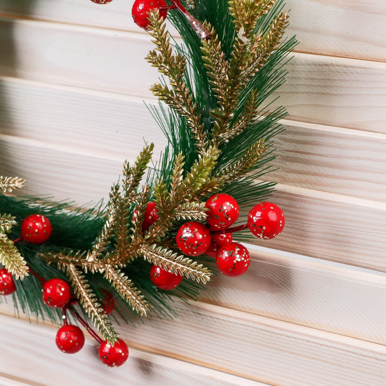 Венок новогодний d=18 см "Зимнее волшебство. Элит", с ягодами, красно-золотой, 18х18х18 см., Зимнее волшебство, Китай