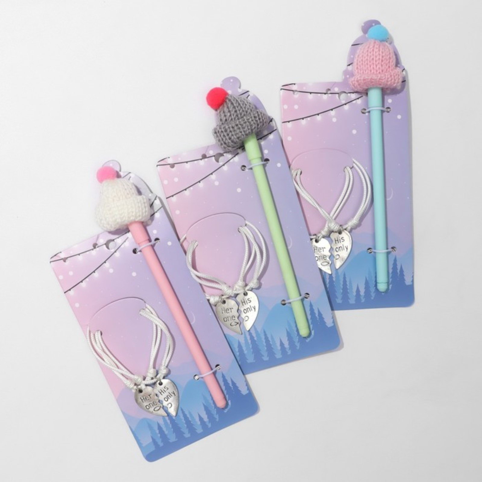 Набор 3 предмета: 2 браслета, ручка "Неразлучники" шапочка, цвет белый с серебром, 6см, 3x6x1.7 см., Queen fair, Китай
