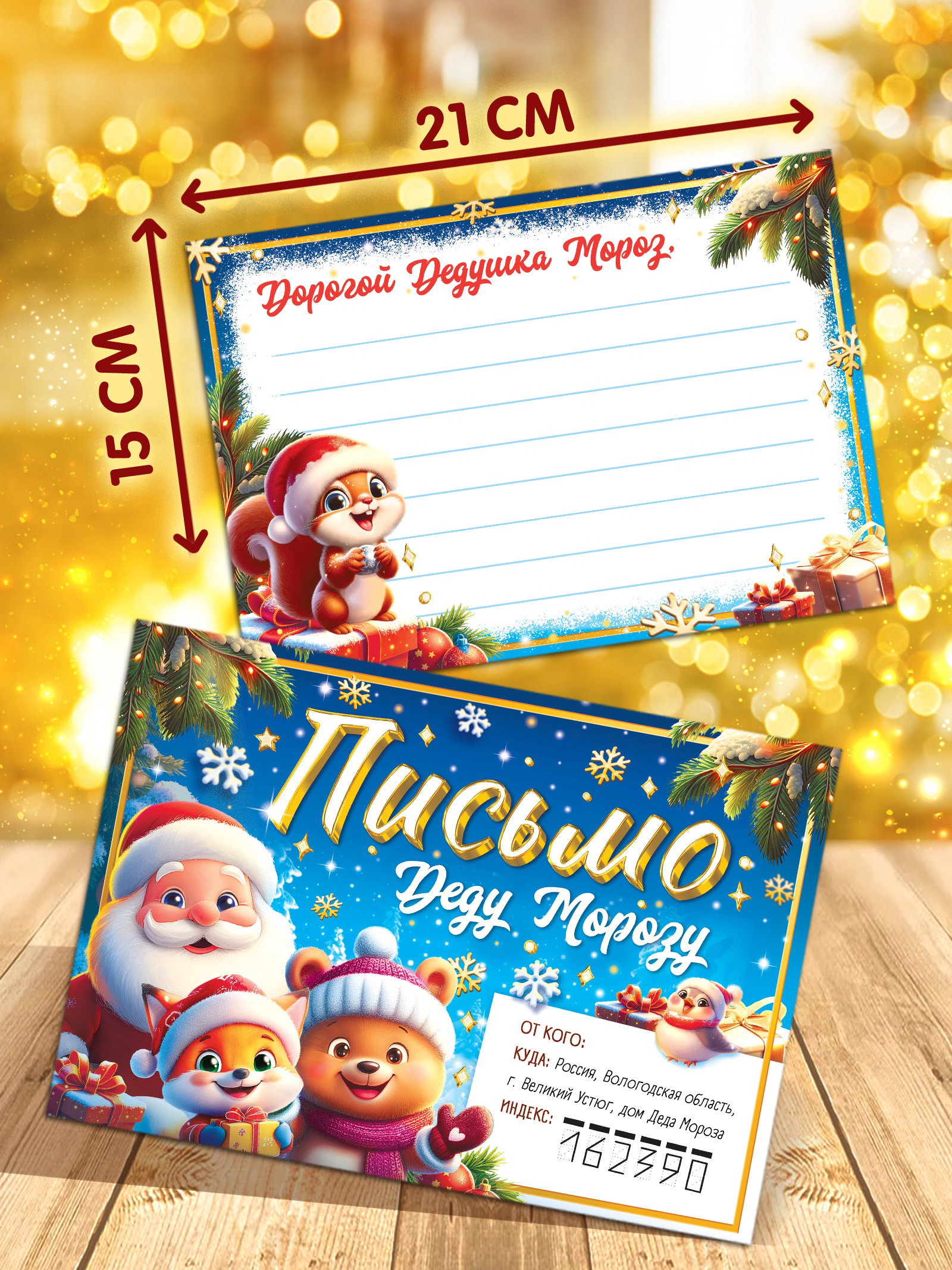 Размер упаковки: 15 x 0.5 x 21 см. tnved: 4911990000 Цвет: Разноцветный Тематика праздника: Новый год Набор: Да Символ года: Нет Формат конверта: А5 Отделка: Без отделки Особенности письма: С конвертом Язык издания: Русский Формат: А5 Возраст: От 3 лет Представьте. Ваш малыш с гордостью пишет своё имя, выбирает подарок и уже знает: Дед Мороз обязательно его услышит. Эти письма не просто бланки. Это магия, которую можно держать в руках с яркими героями, добрыми словами и местом для самого важного: желания. Почему этот набор идеальный выбор: