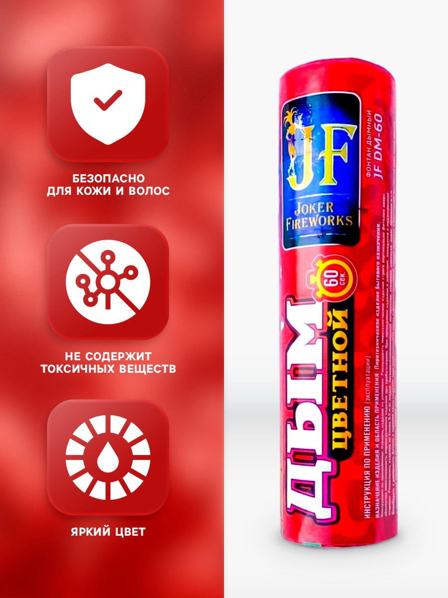 Запрет реализации по сегментам: 00000000534, 00000000550, 00000000594 Размер упаковки: 3 x 12 x 3 см. Вид: Цветной дым Набор: Нет tnved: 3604100000 tnved: 3604100000 Время работы, сек: 60 Количество залпов: 1 Температурное ограничение: Нет Цвет дыма: Красный Цветной дым это пиротехническое изделие, создающее красивые цветные облака для привлечения внимания, организации фотосессий, корпоративных мероприятий и гендер-пати. Он прост в использовании, безопасен для кожи и волос, не содержит токсичных веществ. Изделие оснащено фитилём. Расправьте его от скотча, уберите защиту со стороны фитиля. Установите шашку на землю и подожгите. Когда пойдёт дым, можно взять шашку за самую нижнюю часть, отведя её от себя на расстояние вытянутой руки. Не направляйте на одежду. Как правильно использовать