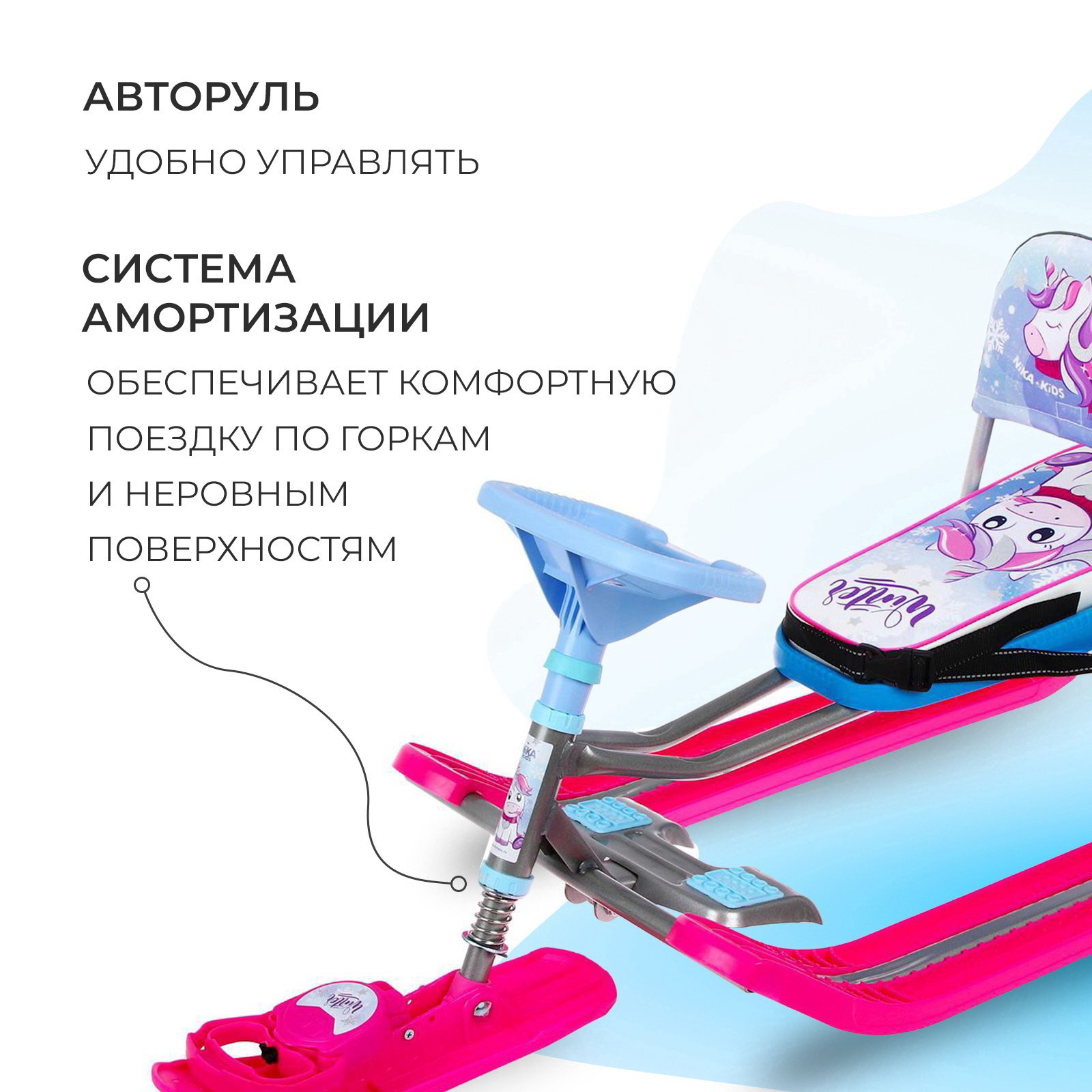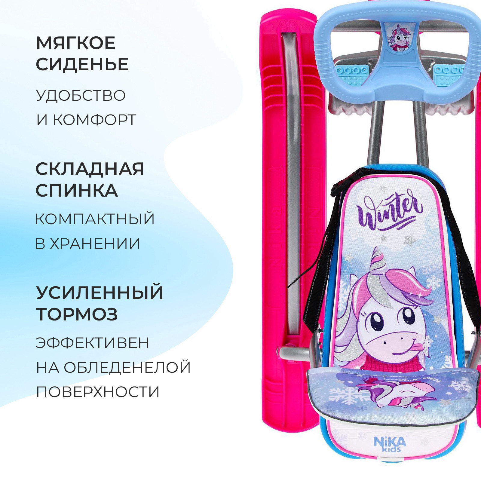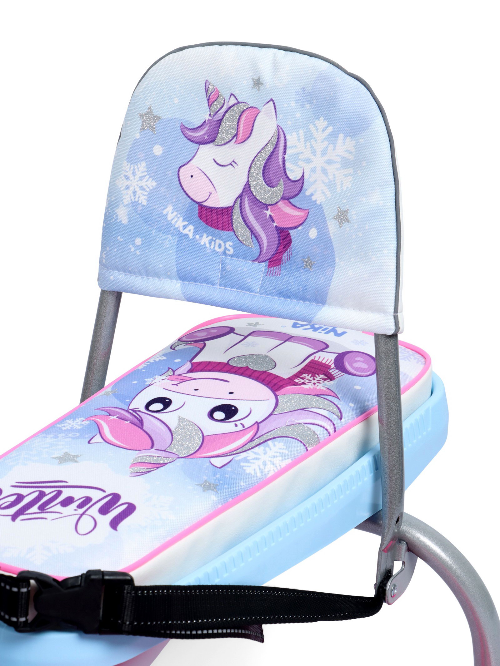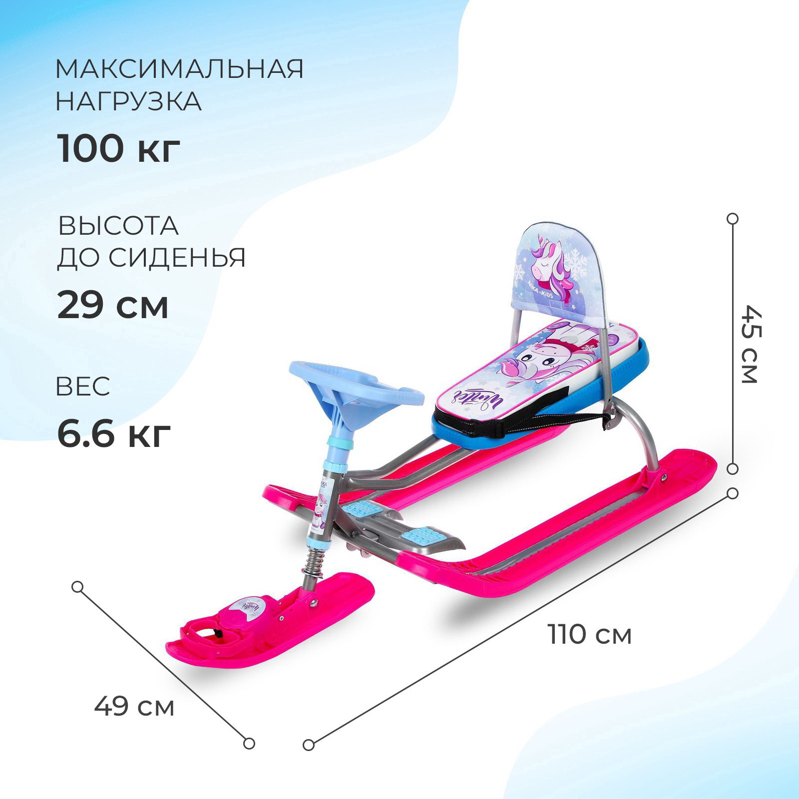 Снегокат "Тимка спорт 4-1" Единорог, со спинкой, голубой, розовый, ТС4-1 М/ЕР, Nika Kids, Россия
