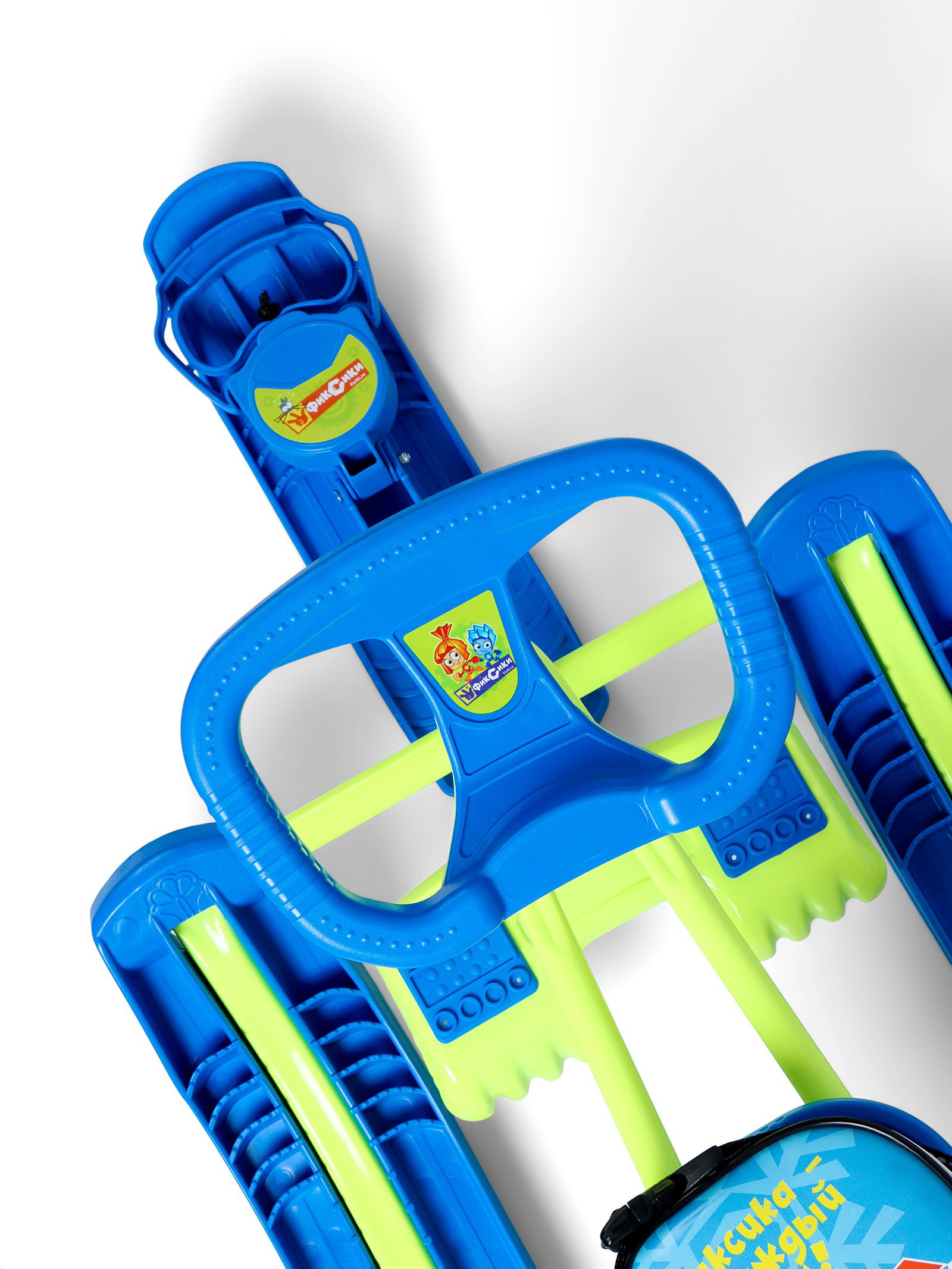 Для кого: Для девочки, Для мальчика, Унисекс Ремень безопасности: 2-точечный (поясной), Да Размер упаковки: 73.5 x 25 x 46 см. Размер упаковки: 73.5 x 25 x 46 см. tnved: 9506999000 Размер сиденья, см: 20 x 45 Возраст: От 4 лет Цвет: Голубой Наличие спинки: Да Maксимальная нагрузка, кг: 100 Высота до сиденья, см: 29 Тип руля: Авторуль Буксировочный трос: Автоматическая намотка Ручка для родителей: Нет Амортизатор: Да Регулировка посадочных мест: Нет Снегокат предназначен для перевозки детей по плотному снегу или льду, катанию с горок. Имеет сварную конструкцию из стальных труб и пластиковых элементов. Оснащён мягким сиденьем, обтянутым искусственной кожей с рисунком, складной спинкой и двухточечным ремнём безопасности. Оборудован буксировочным тросом с автоматической намоткой и системой амортизации, которая обеспечивает комфортную поездку по крутым горкам и неровным поверхностям. Усиленный тормоз эффективен на обледенелой поверхности. Характеристики