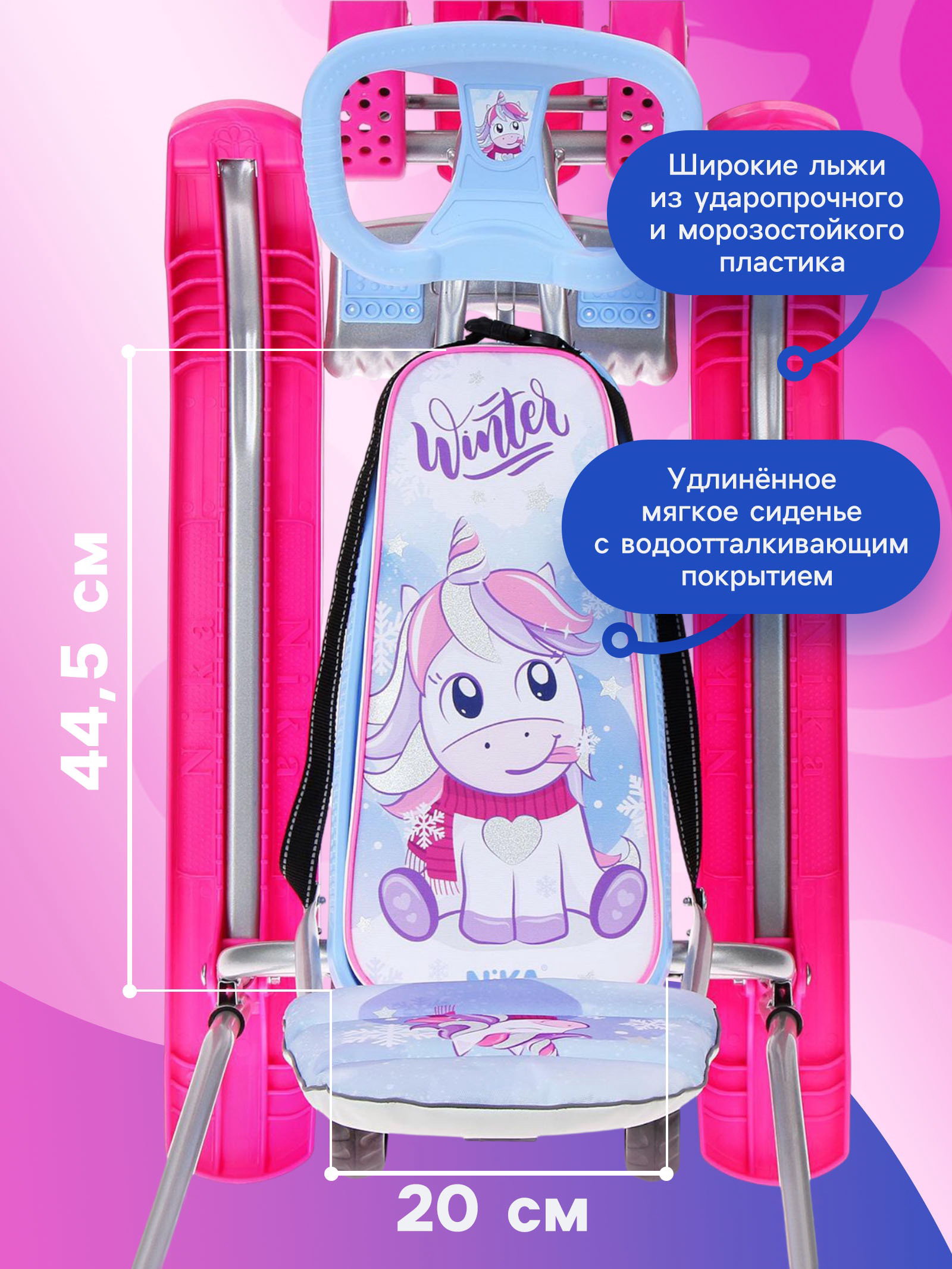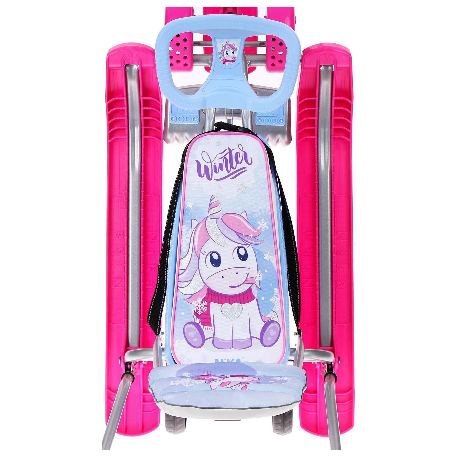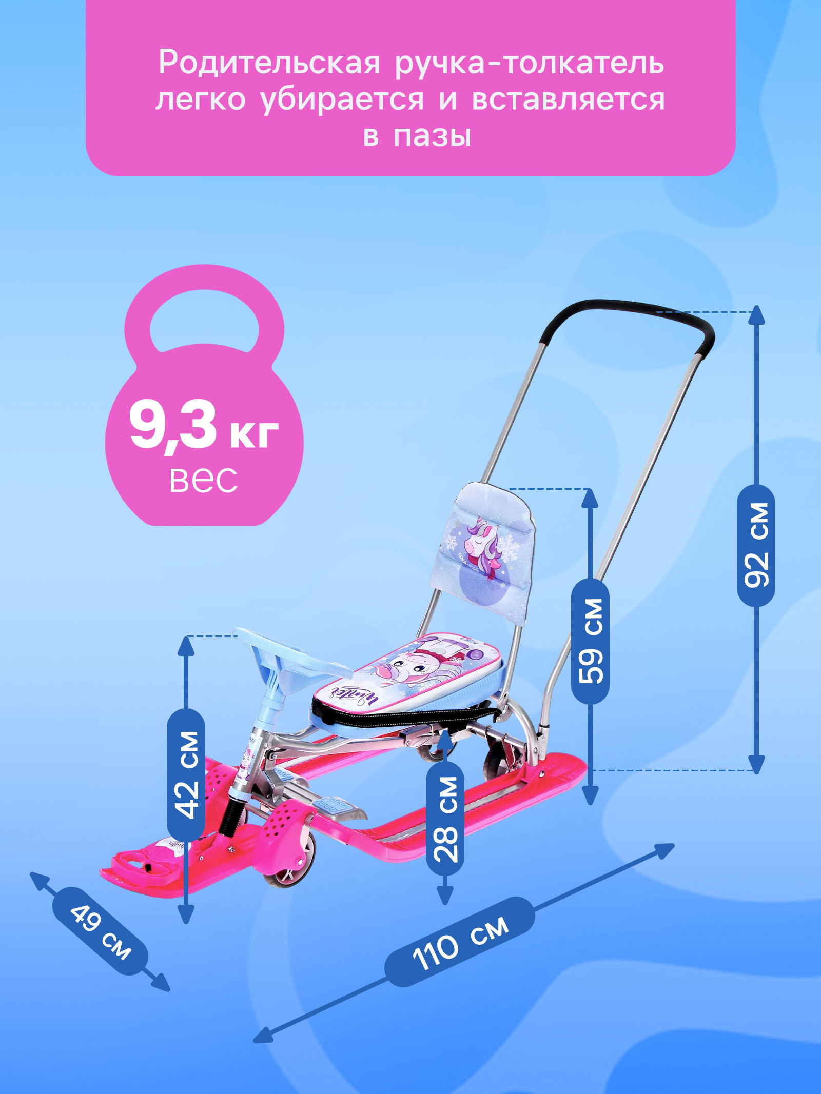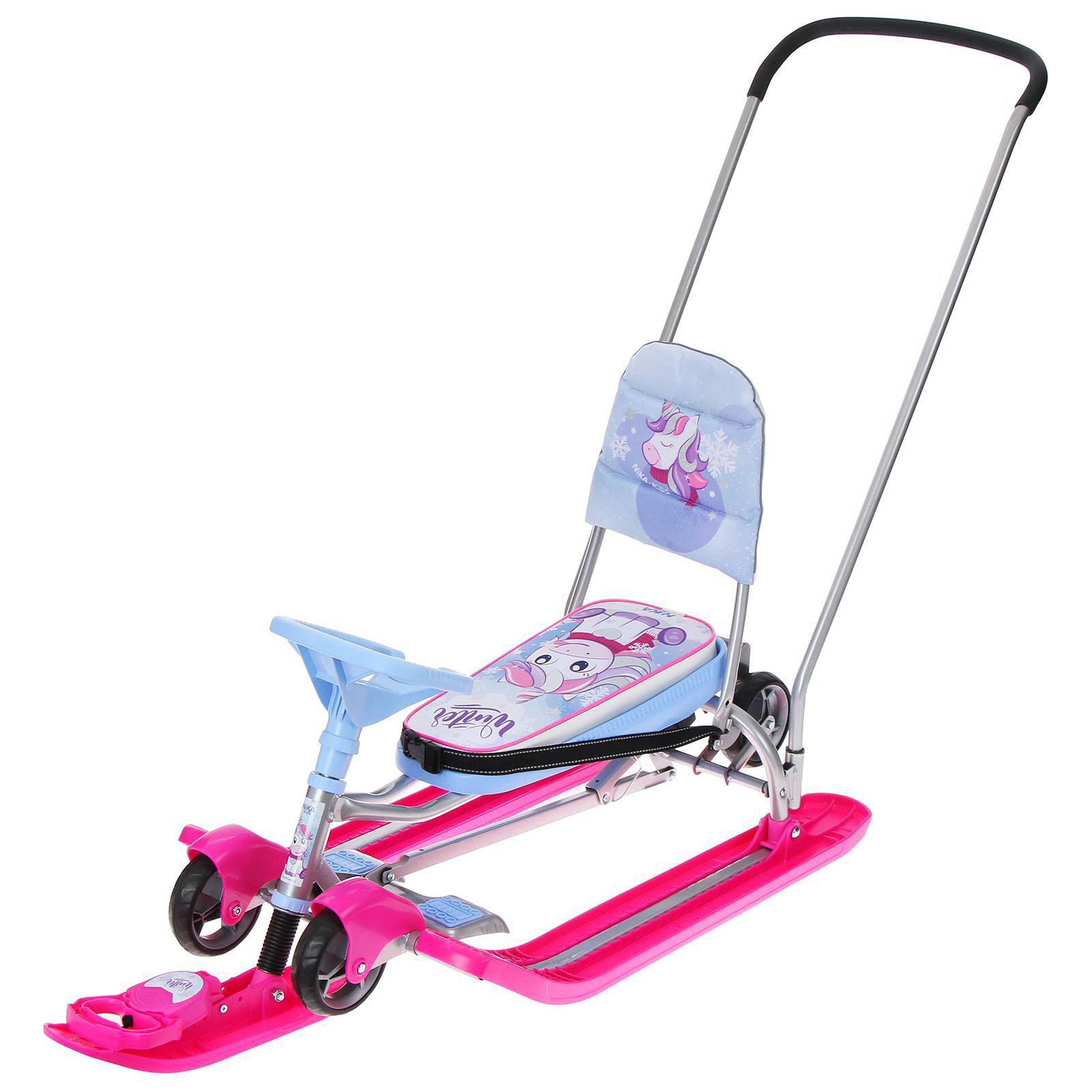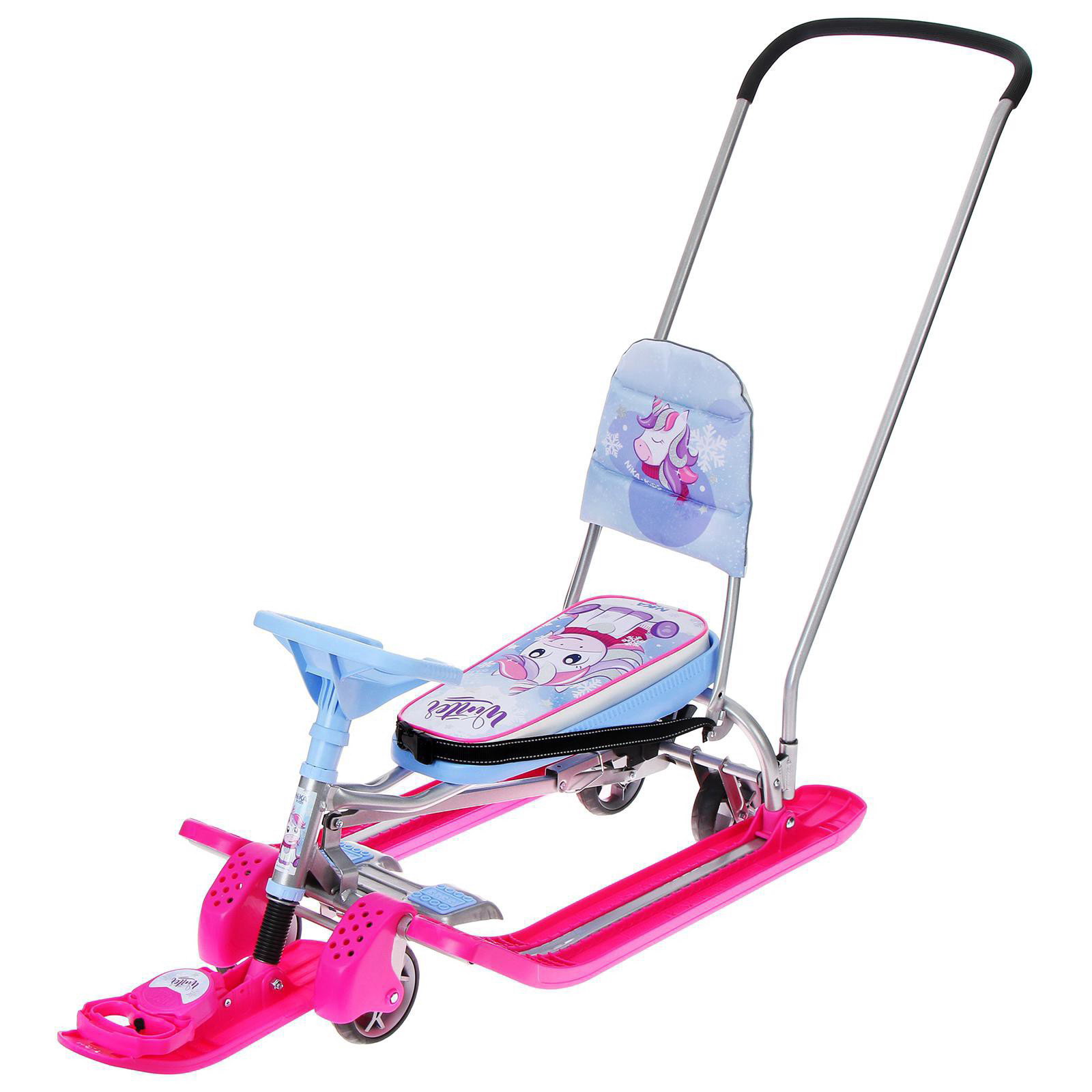 Снегокат с колёсами "Тимка спорт 6" Единорог, со спинкой, с родительской ручкой, голубой, розовый, ТС6-М/ЕР, Nika Kids, Россия