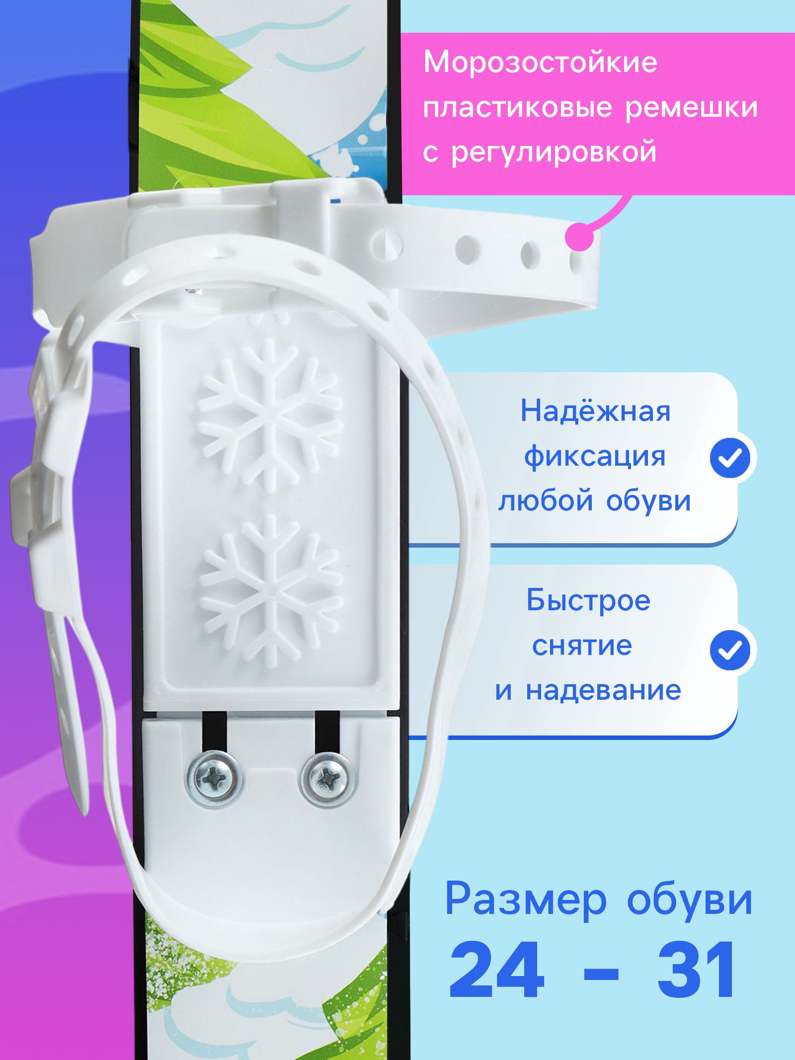Размер упаковки: 11 x 14 x 79 см. tnved: 9506111000 tnved: 9506111000 Возраст: Детский Цвет: Разноцветный Температурное ограничение: Нет Длина, см: 75 Стиль катания: Для классического хода Тип крепления: Универсальное Насечка: Да Лыжи предназначены для катания детей от 3 лет. Изготовлены из морозостойкого полипропилена. Материал обеспечивает гибкость, стойкость к истиранию и скользящую поверхность полоза. Температура хрупкости до –20 ℃. Технология газонаполненного литья гарантирует высокую прочность и оптимальную жёсткость полоза для начинающих лыжников. Противооткатная насечка на полозе не даёт лыжам проскальзывать на снегу. Пластиковые ремешки надёжно фиксируют ногу. Лыжи подходят для крепления к повседневной обуви: 24–31 размеры. Палки имеют пластиковые травмобезопасные наконечники, это обеспечивает защиту во время катания. Длина лыж: 75 см Длина палок: 75 см | ||