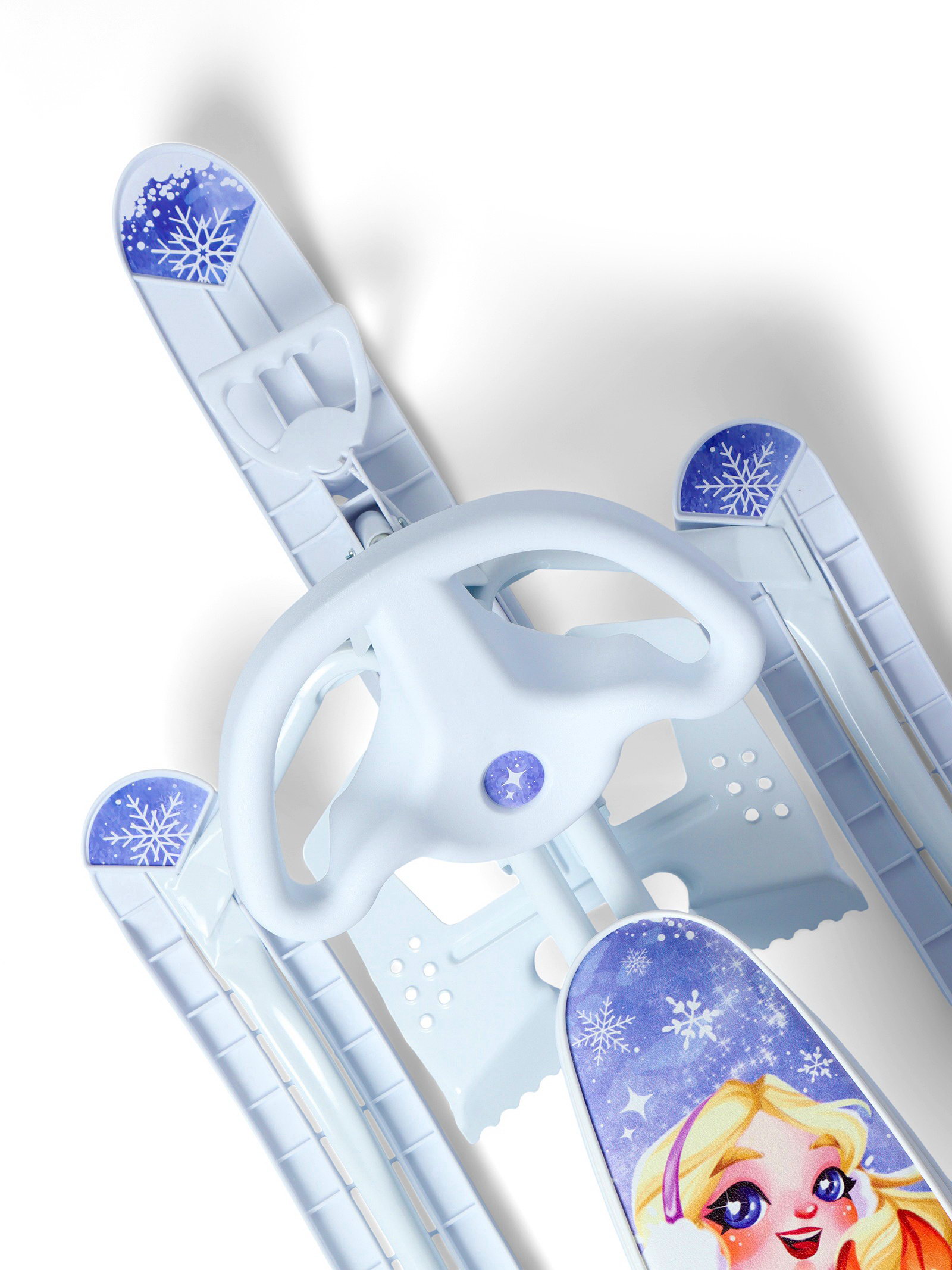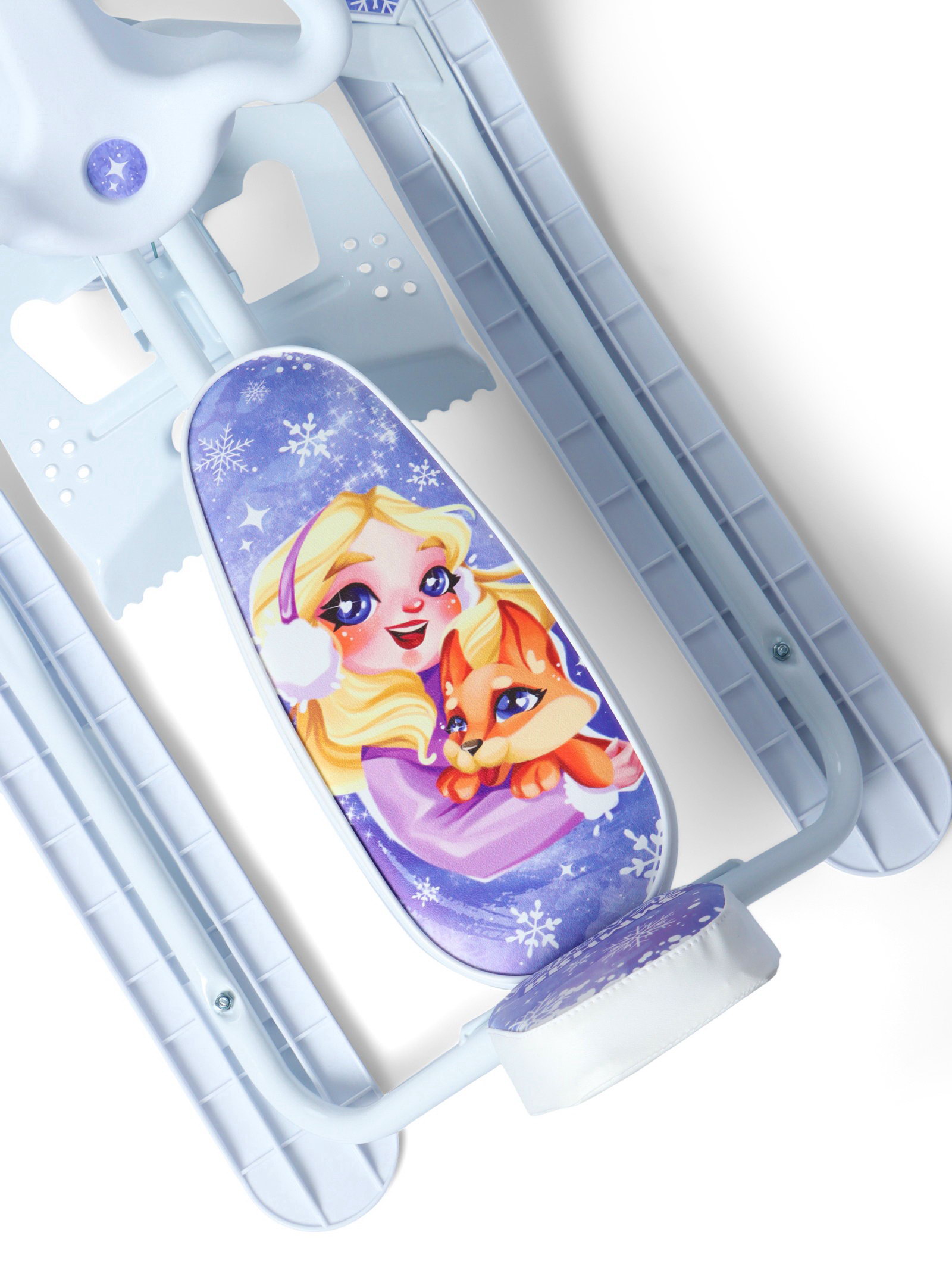 Размер упаковки: 42 x 20 x 68 см. Для кого: Для девочки tnved: 9506999000 Температурное ограничение: Нет Наличие спинки: Да Ручка для родителей: Нет Maксимальная нагрузка, кг: 100 Высота до сиденья, см: 24 Амортизатор: Да Цвет: Белый Тип руля: Авторуль Возраст: От 1.5 лет Буксировочный трос: Автоматическая намотка Регулировка посадочных мест: Да Снегокат предназначен для перевозки детей от 1,5 до 7 лет по плотному снегу или льду, катанию с горок. Имеет сварную конструкцию из стальных труб и пластиковых элементов. Оснащён мягким сиденьем и спинкой, которые обтянуты искусственной кожей с рисунком. Снегокат оборудован буксировочным тросом с автоматической намоткой. Для комфортной поездки два амортизатора сглаживают неровности на дороге. Увеличенная передняя карвинговая лыжа позволяет лучше управлять транспортом. Тормоз эффективен на обледенелой поверхности и высокой скорости. Особенности
