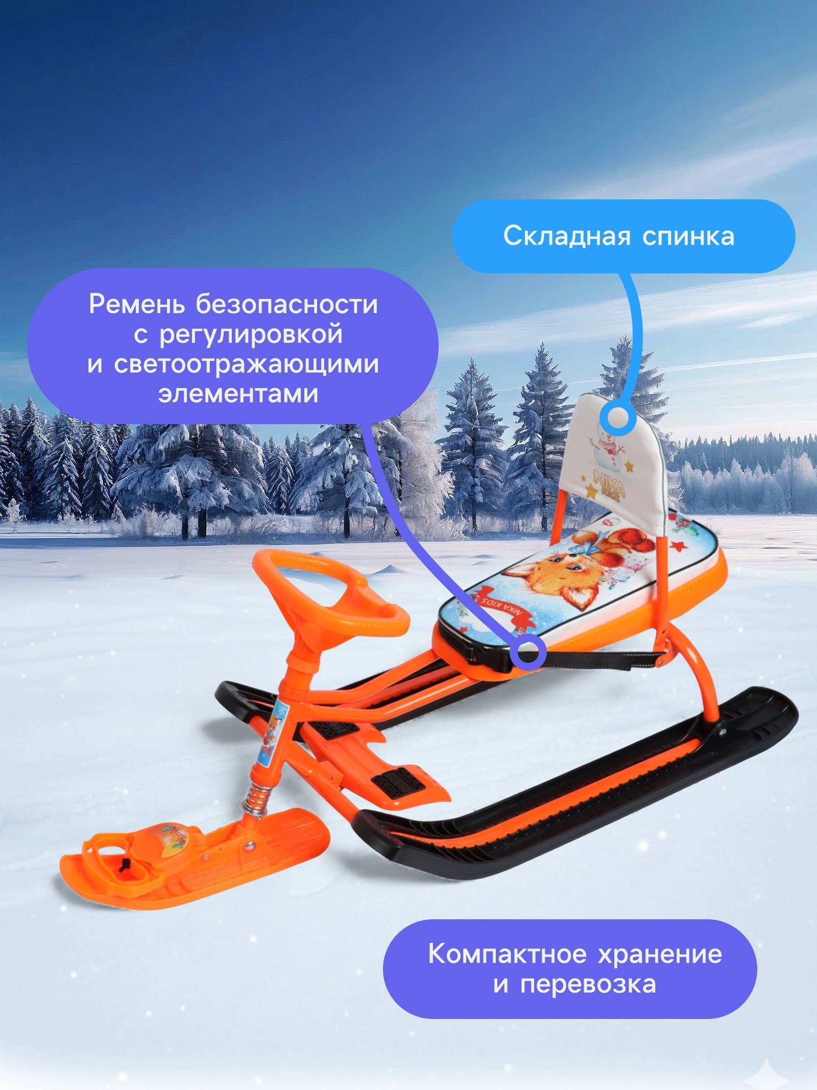 Снегокат "Тимка спорт 4-1" Лисёнок, со спинкой, оранжевый, ТС4-1/Л2, Nika, Россия