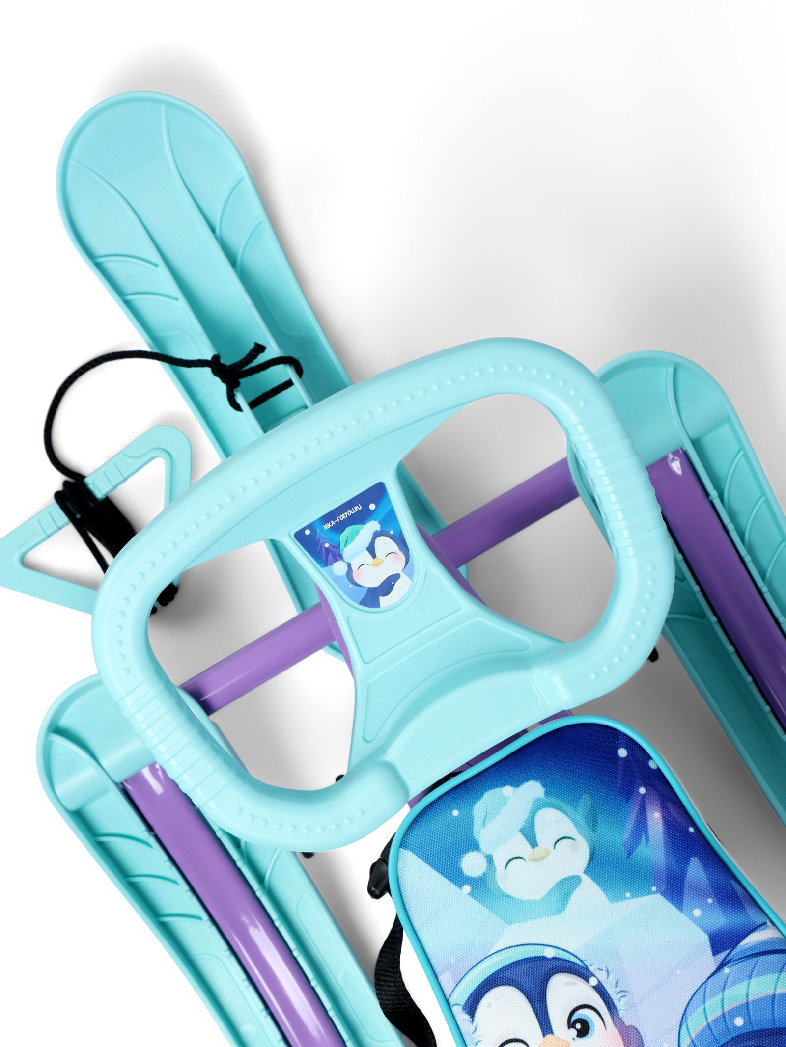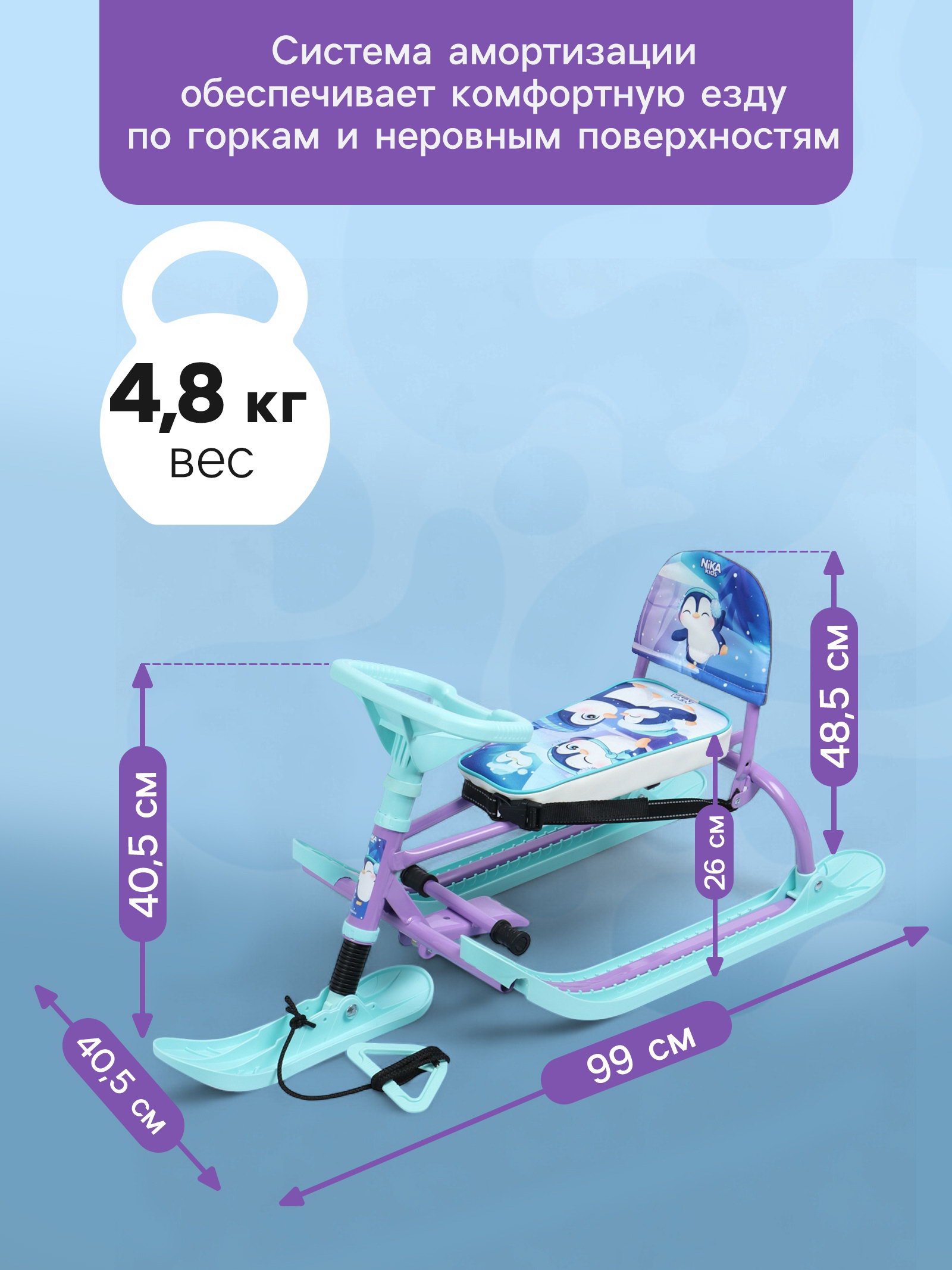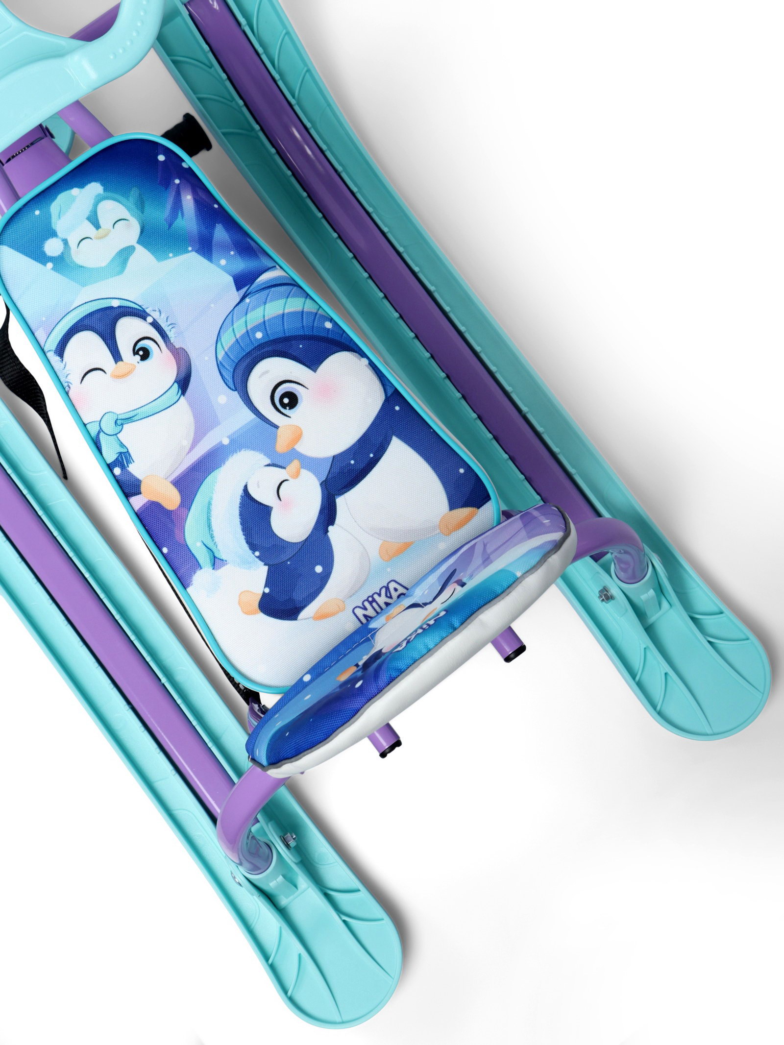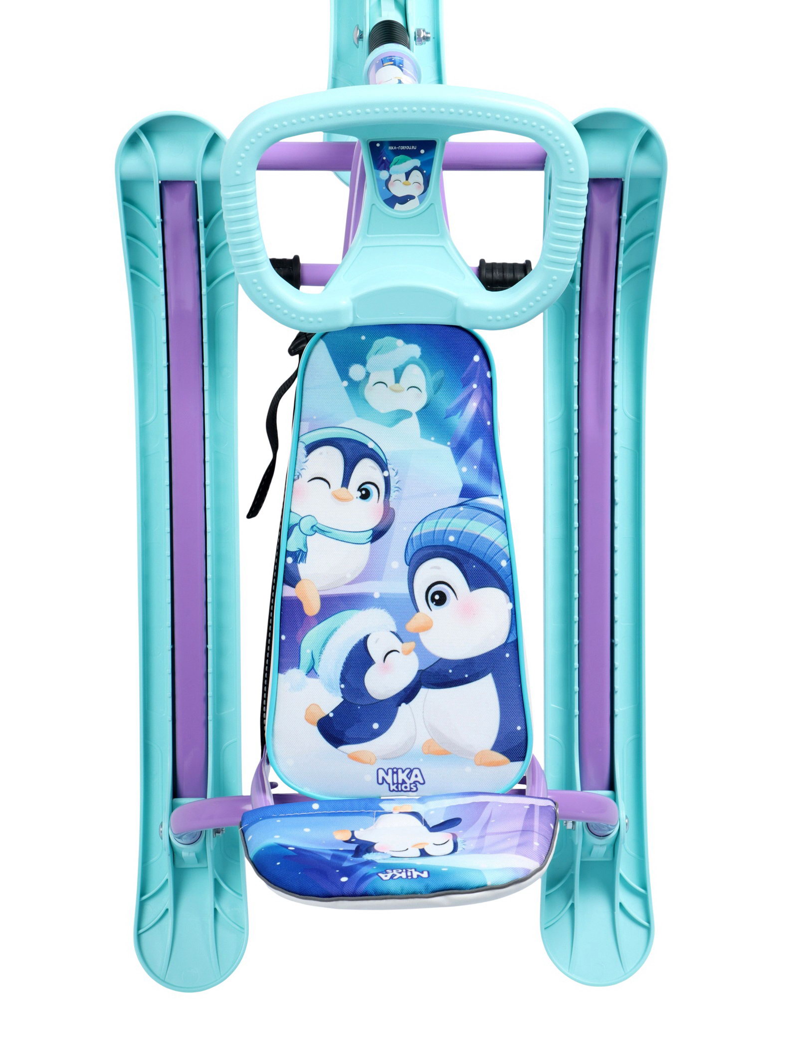 Снегокат "Twiny1+" с пингвинятами, со спинкой, голубой, фиолетовый, TW1+/П, Nika Kids, Россия