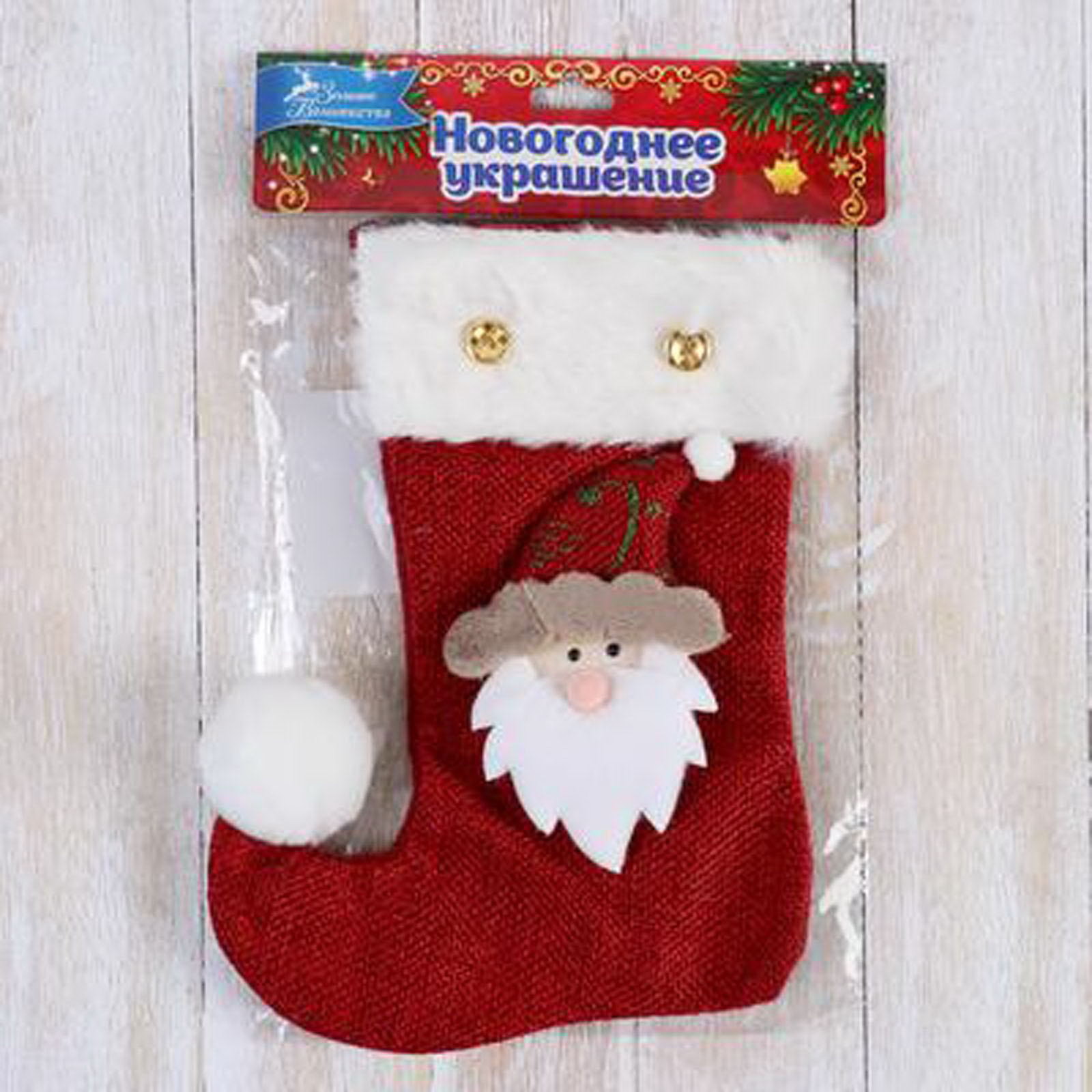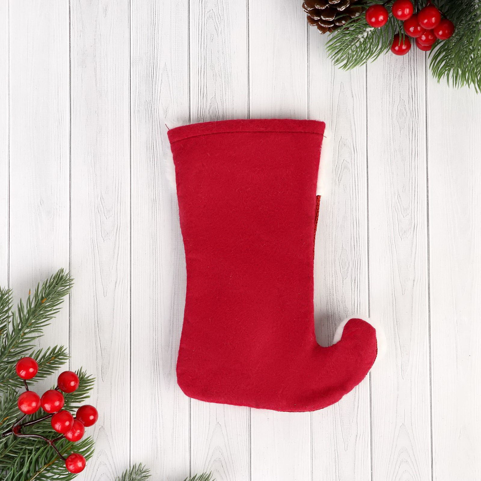 Носок для подарков "Помпошка" Дед Мороз, 15x18 см, МИКС, 15x18 см., Зимнее волшебство, Китай
