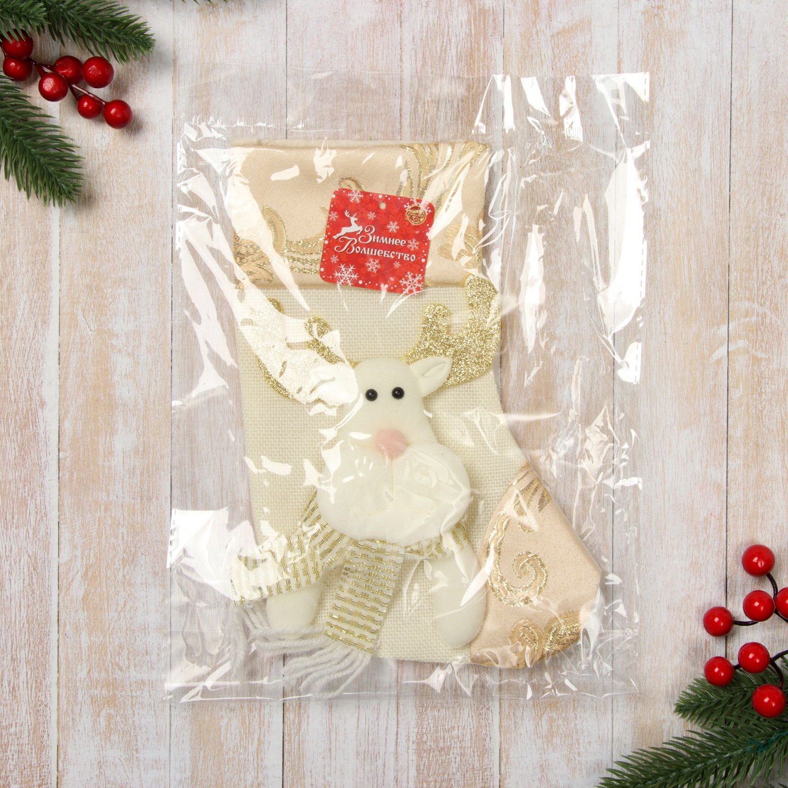 Носок для подарков "Олень ажурный" 17.5x25.5 см, бежевый/золотистый, 17.5x25.5 см., Зимнее волшебство, Китай