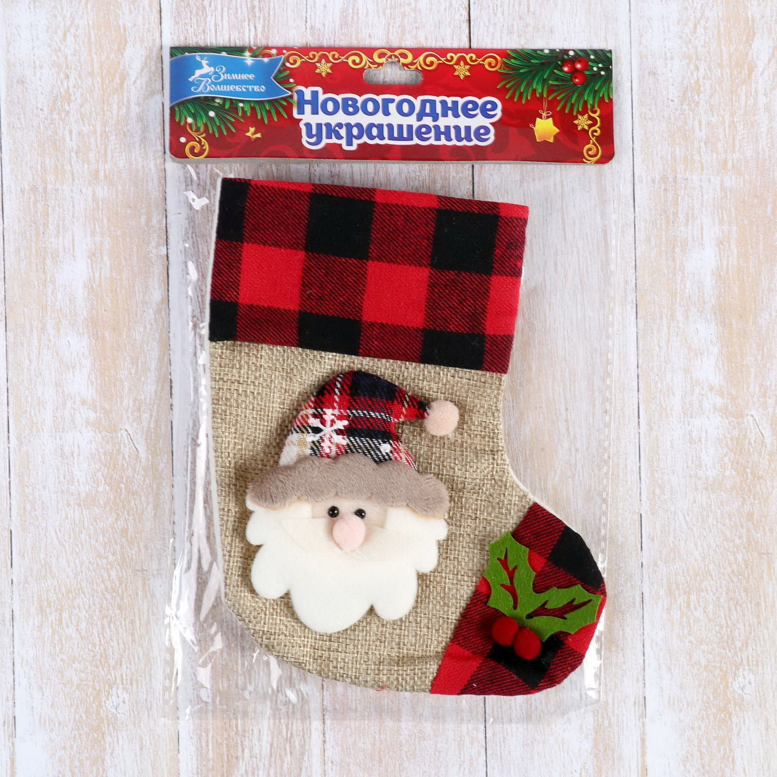 Носок для подарков "Дед Мороз" 12x15.5 см, коричневый, 12x15.5 см., Зимнее волшебство, Китай