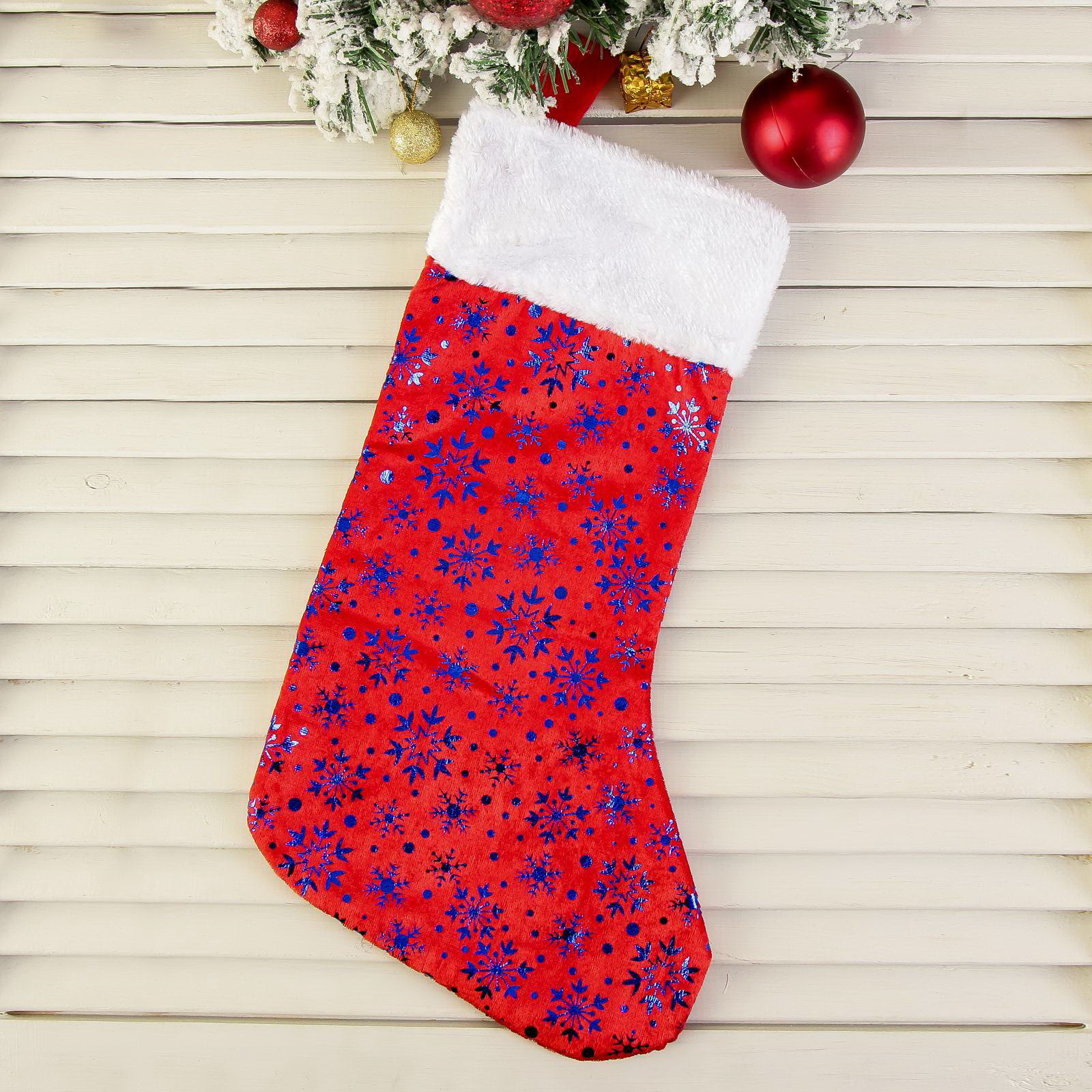 Носок для подарков "Снежинки" 19x42 см, красный, 19x42 см., Зимнее волшебство, Китай
