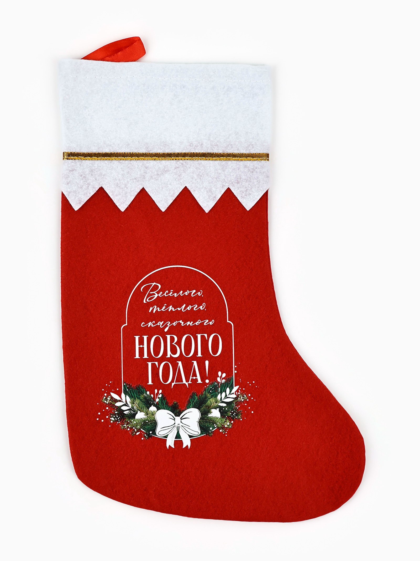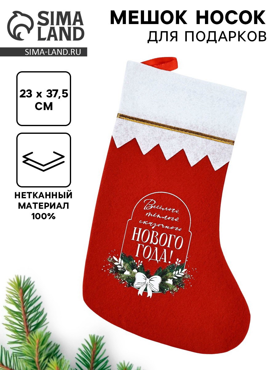 Мешок - носок для подарков "Весёлого Нового года", 25x36x1 см., Сима-ленд, Китай