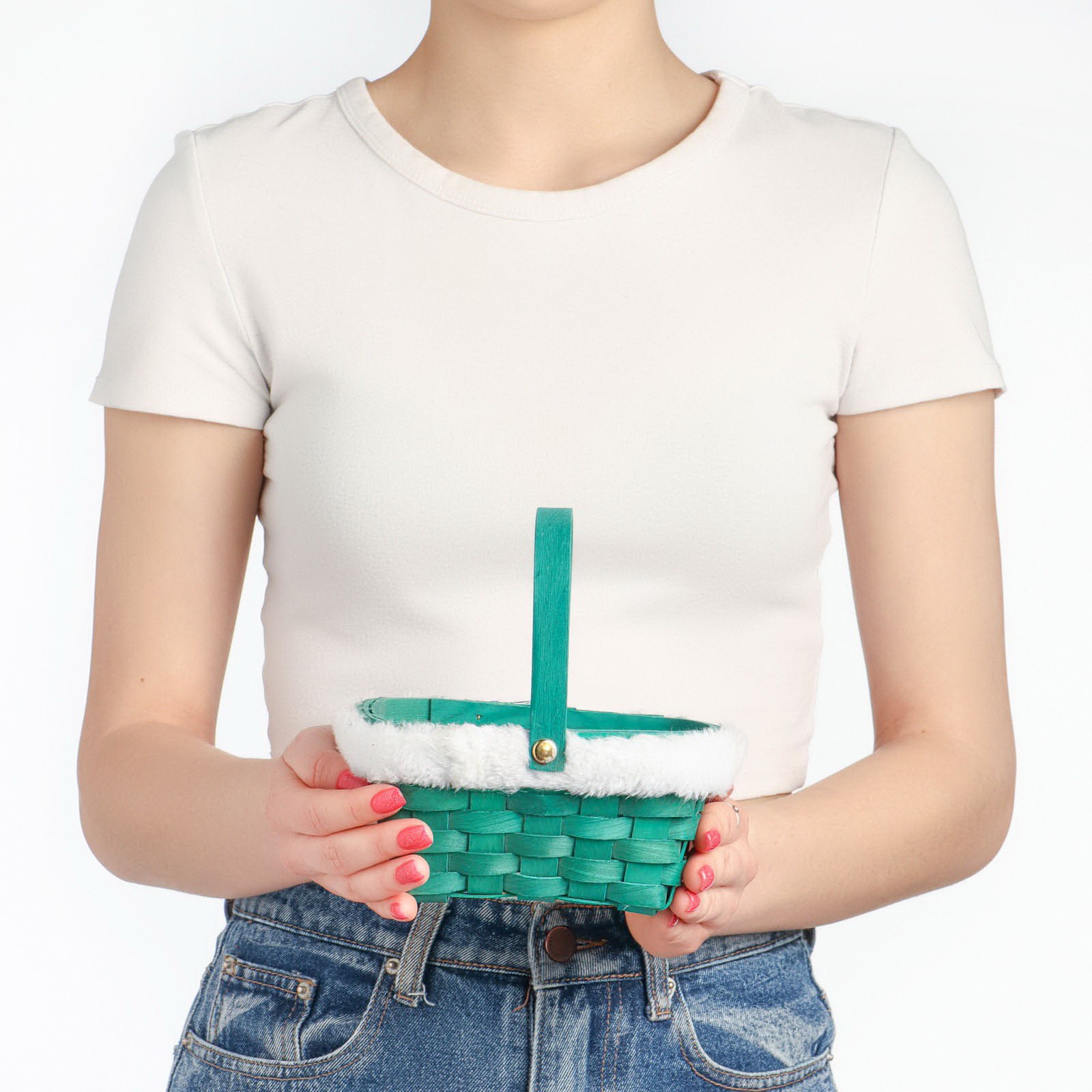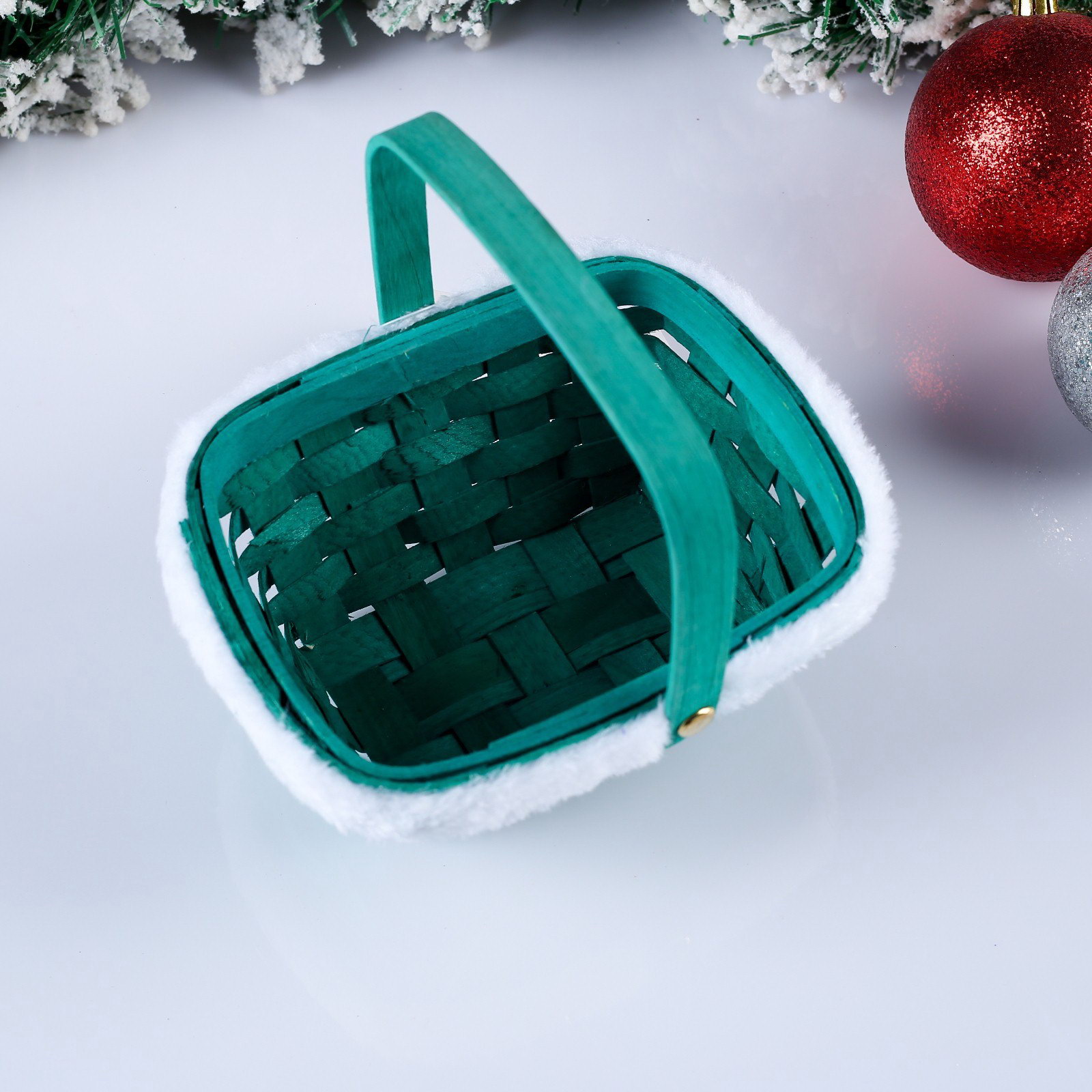 Корзина плетёная для хранения "Новогодняя", 15x12x7.5 см, ручка h=17.5 см, зелёная, 12x15x25 см., Россия