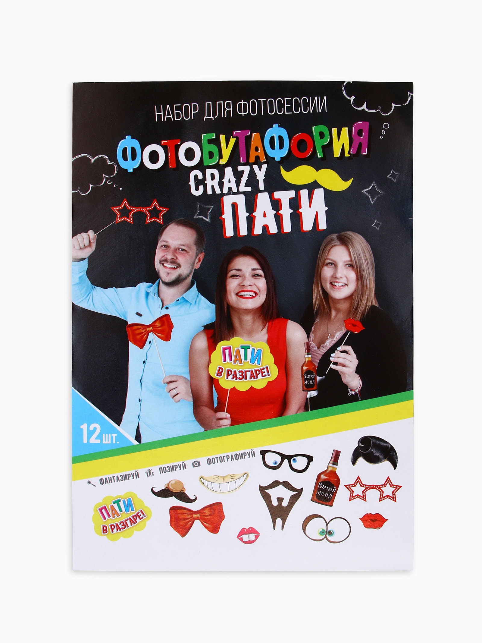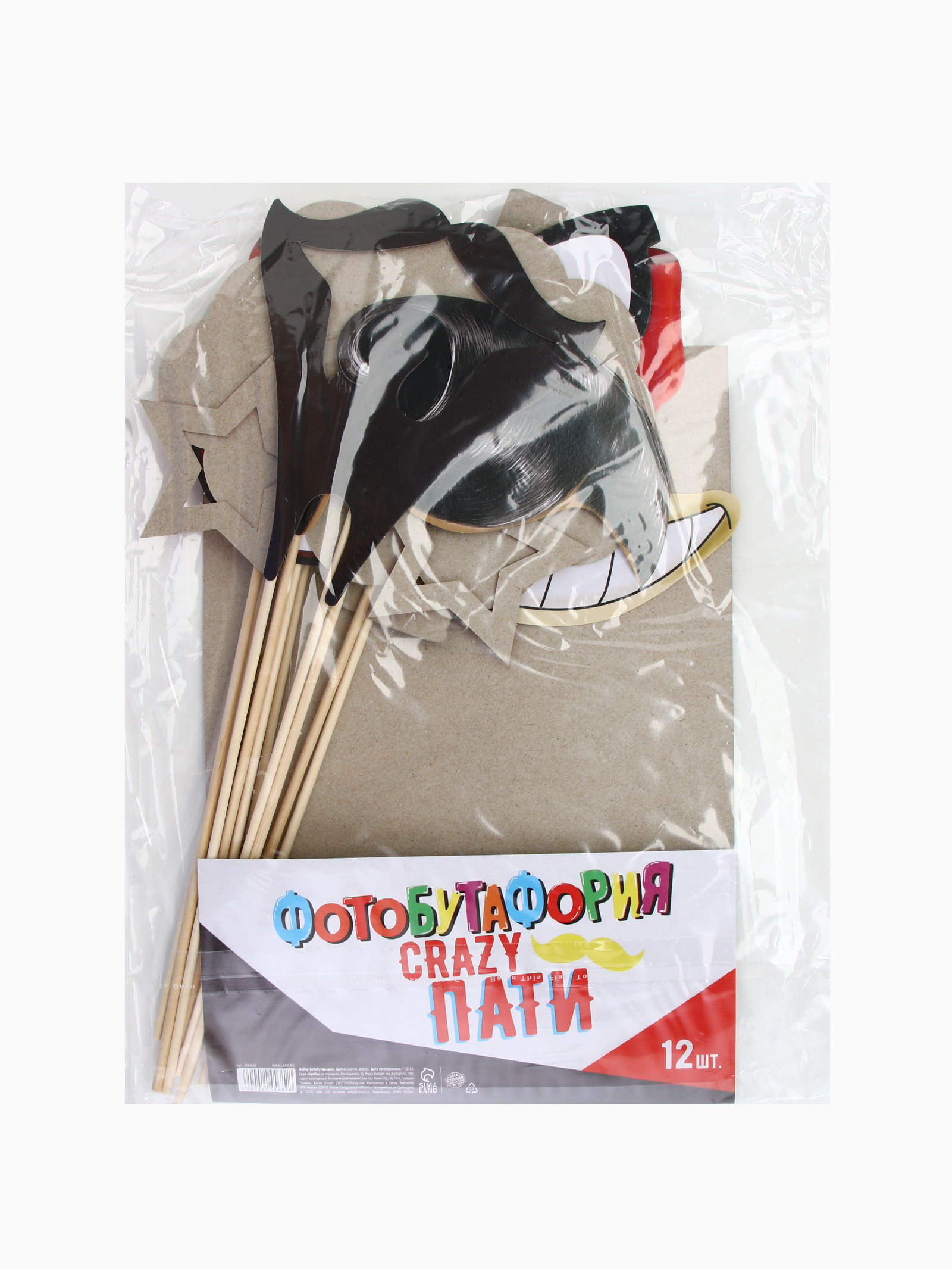 Фотобутафория "Крейзи пати", 12 предметов, 20x30x0.5 см., Страна Карнавалия, Китай