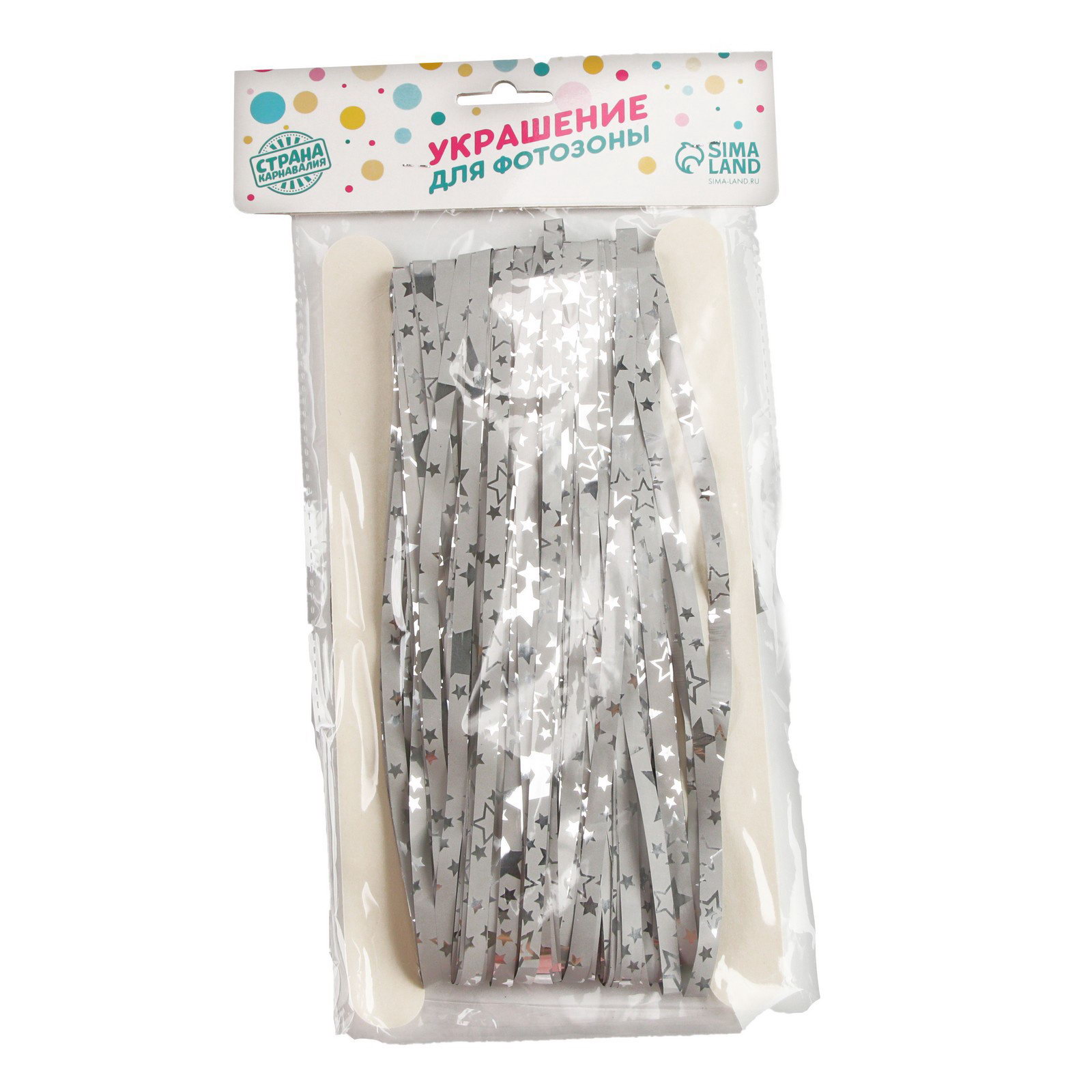 Праздничный занавес "Дождик" со звёздами, р. 200x100 см, серебро, 14x23x0.5 см., Страна Карнавалия, Китай