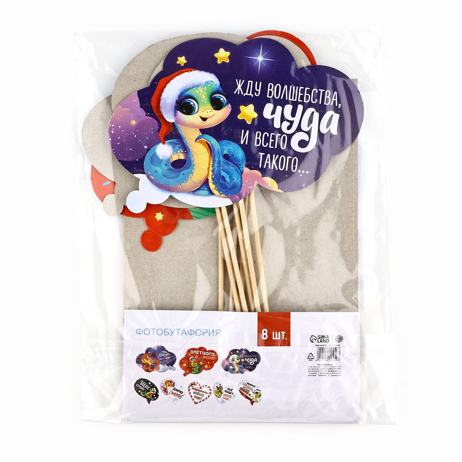 Фотобутафория новогодняя "Улётного Нового года", 8 предметов, 20x30 см, Страна Карнавалия, Россия