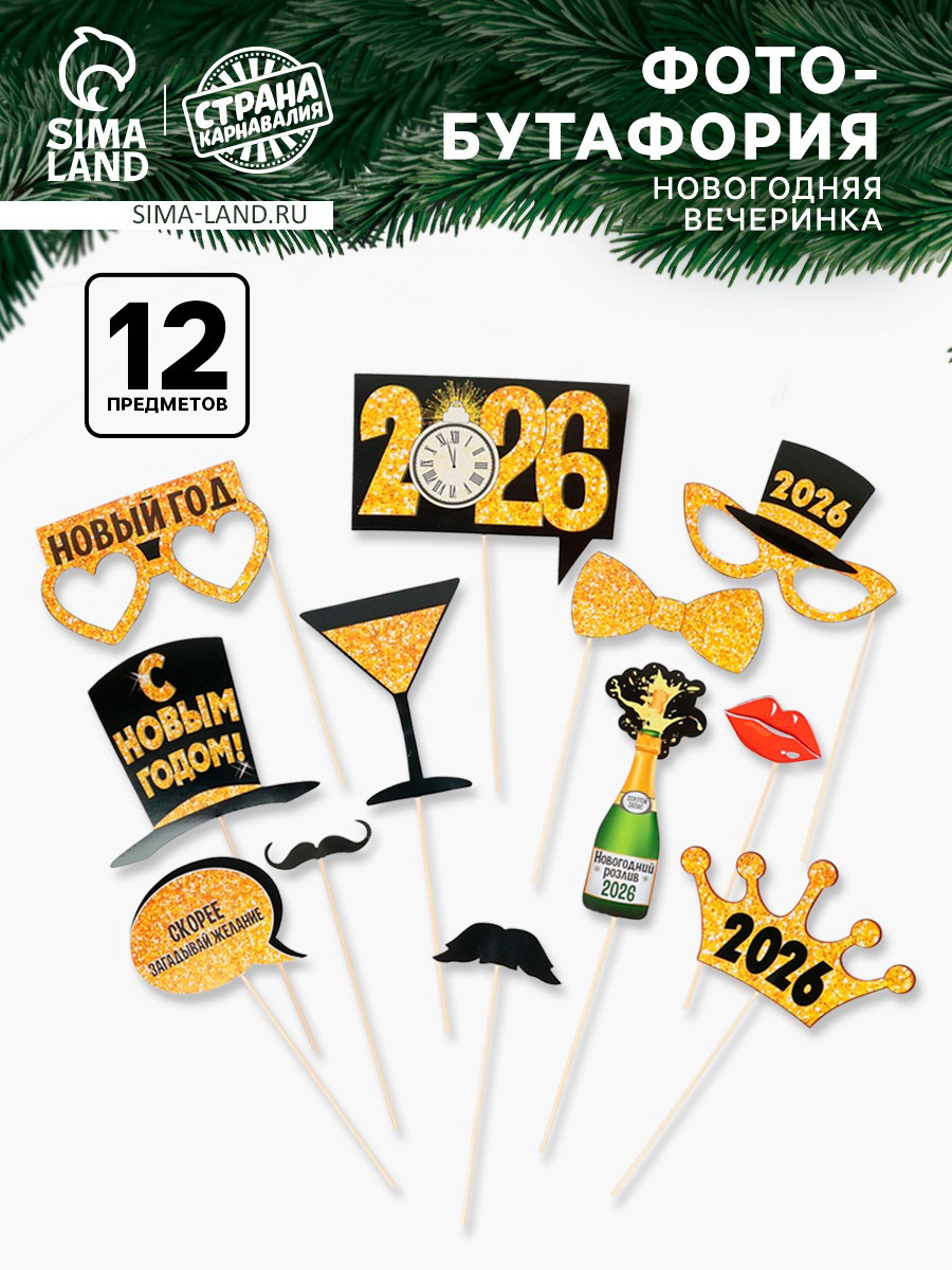 Набор фотобутафории "Новогодняя вечеринка", 12 предметов, Страна Карнавалия, Россия