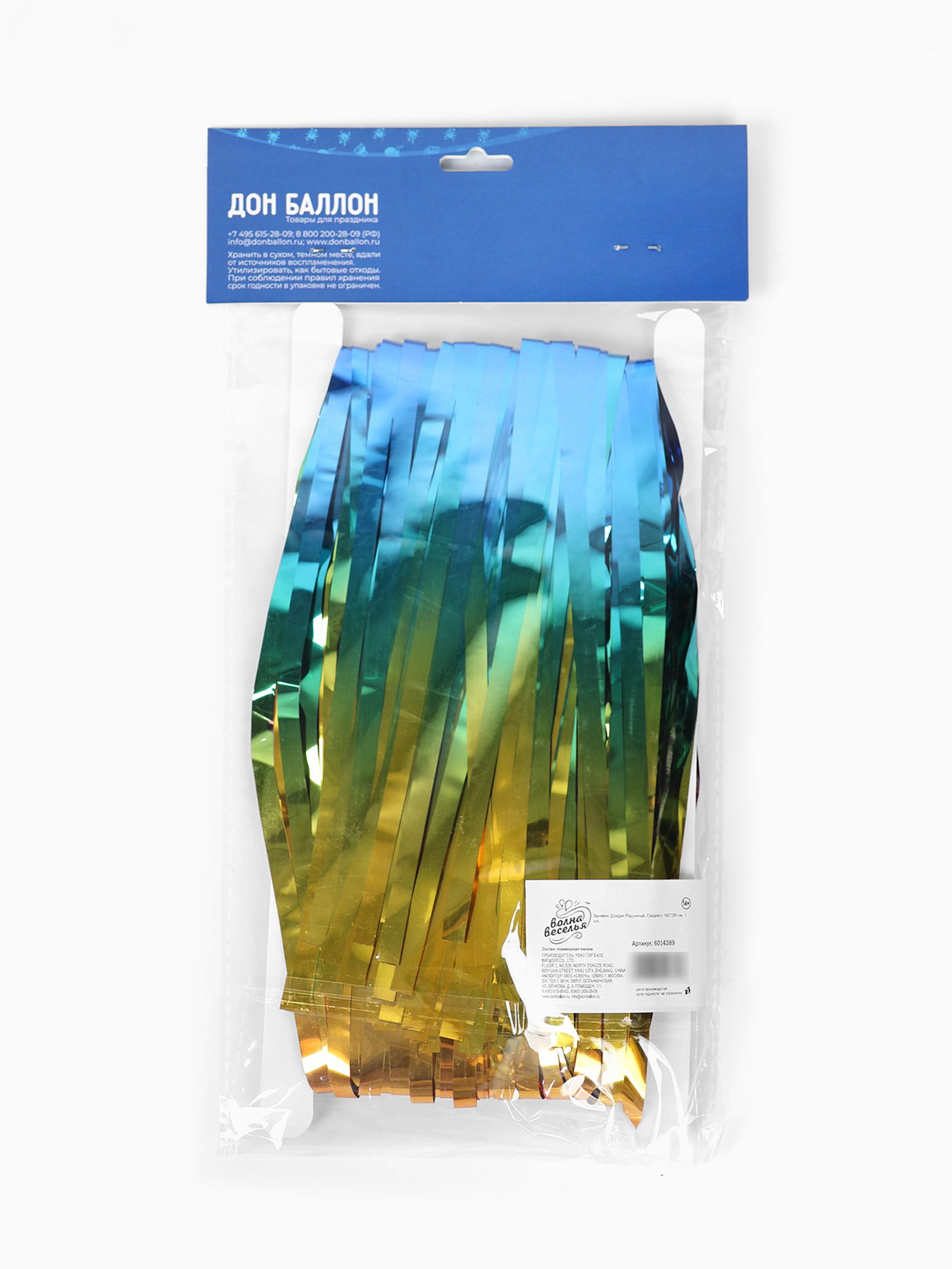 Фотозона-занавес "Дождик" радужный, градиент, 100x200 см, Волна Веселья, Китай