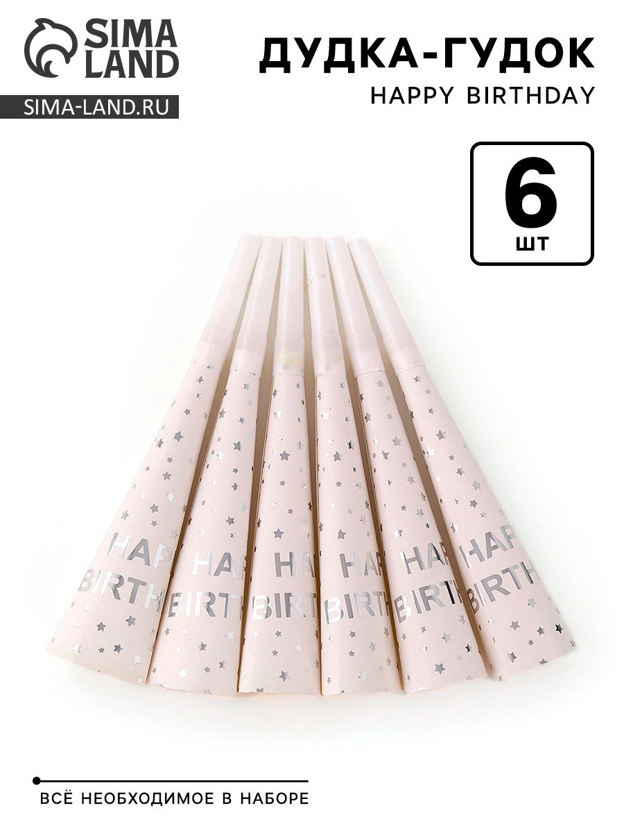 Дудка-гудок "Happy birthday", 6 шт., 10x29x4 см., Китай
