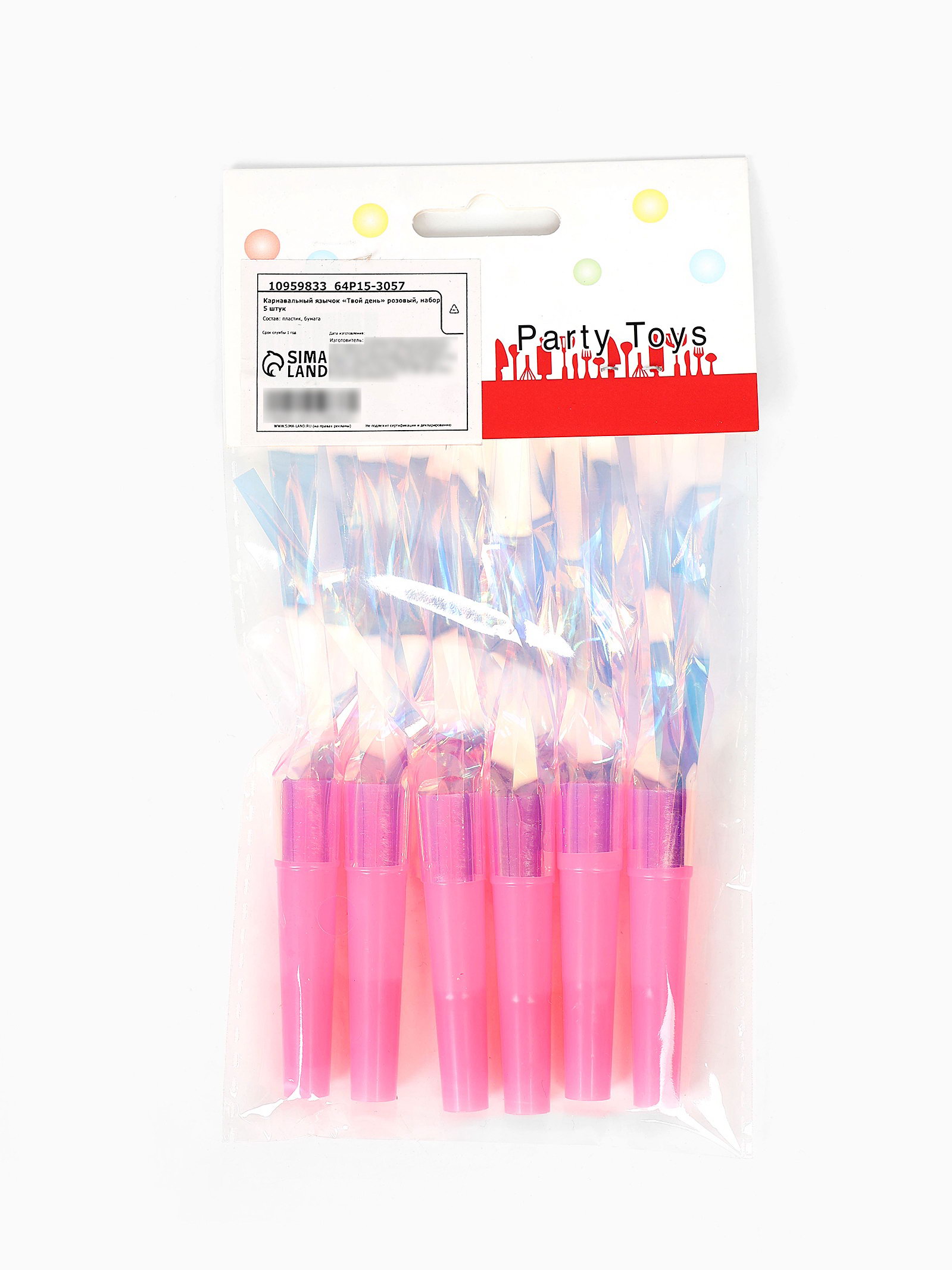 Карнавальный язычок "Твой день", розовый, набор 5 штук + 1 в подарок, 12x20x1 см., Китай