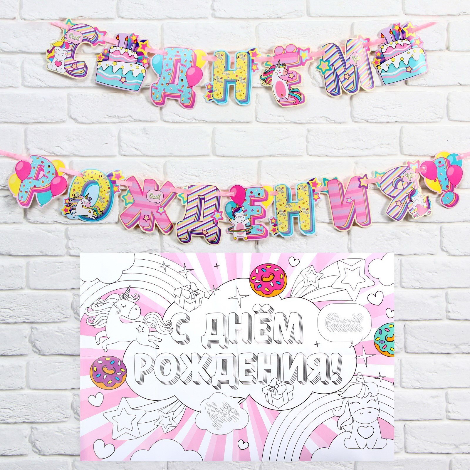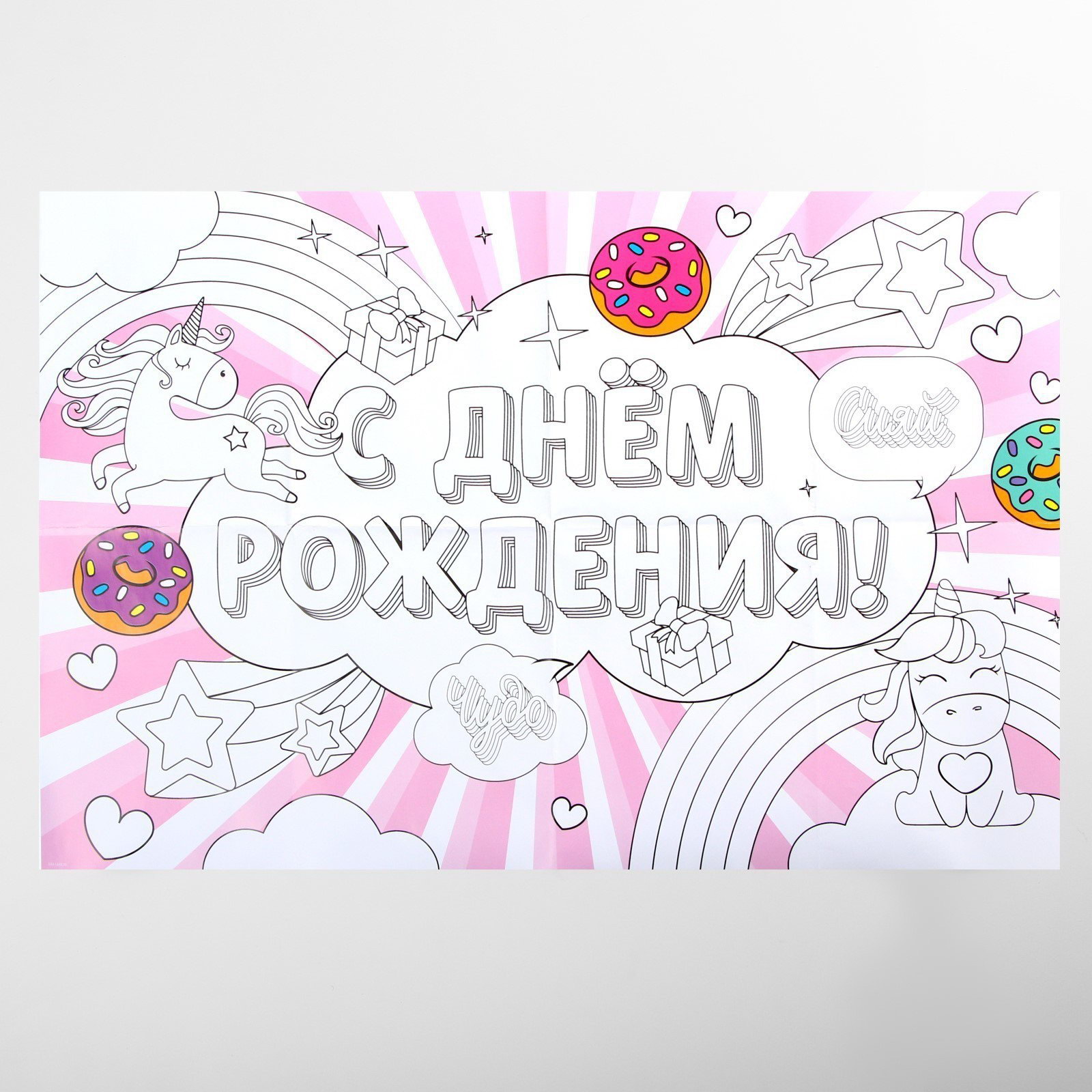 Набор гирлянда и плакат-раскраска "Единороги", 21x16x0.5 см., Страна Карнавалия, Китай