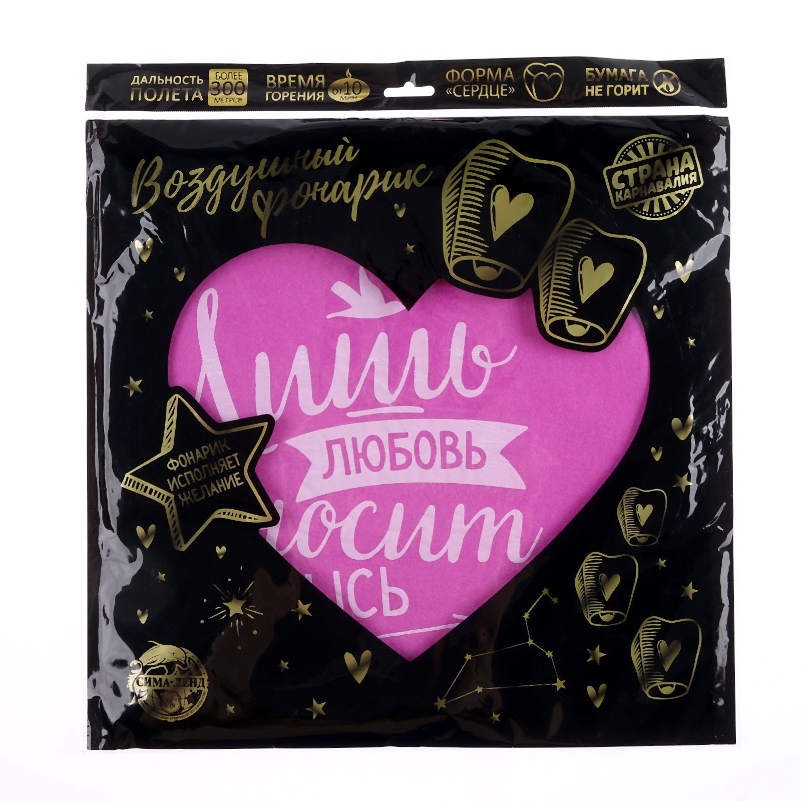 Небесный фонарик "Любовь", сердце, МИКС, 36x36x0.5 см., Страна Карнавалия, Китай