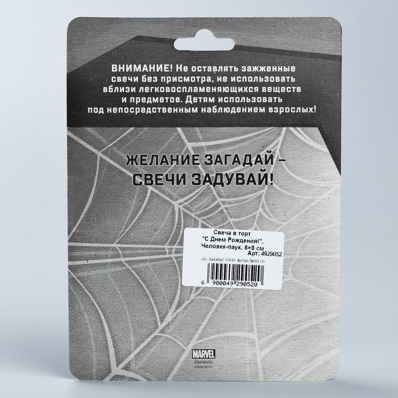 Свеча в торт "С Днем Рождения!", Человек-паук, 8x8 см, MARVEL, Китай