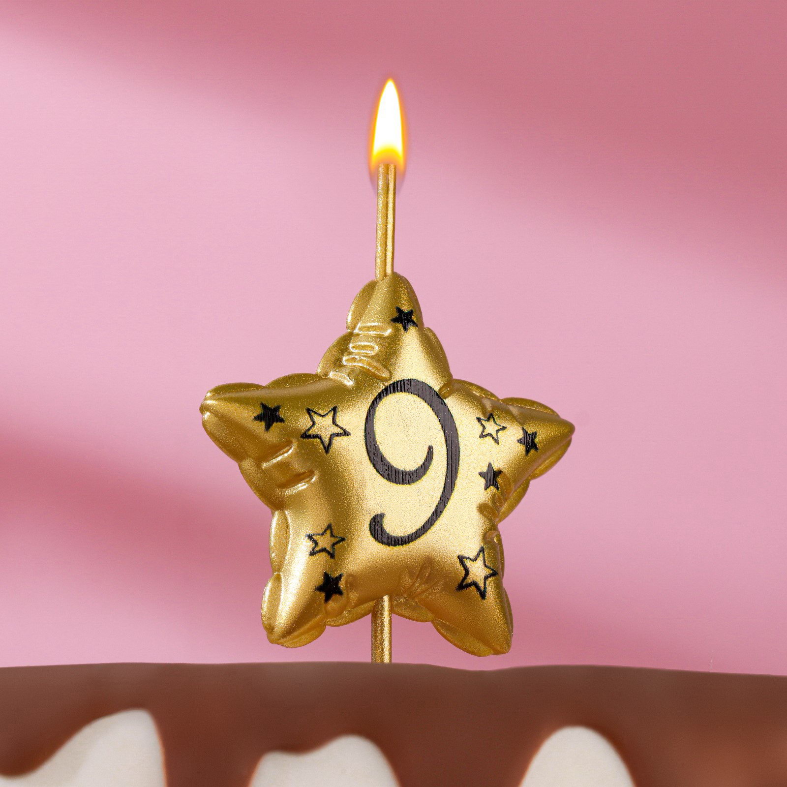 Свеча в торт на шпажке "Воздушная звездочка", цифра 9, 3.5 см, золото, Омский свечной завод, Россия