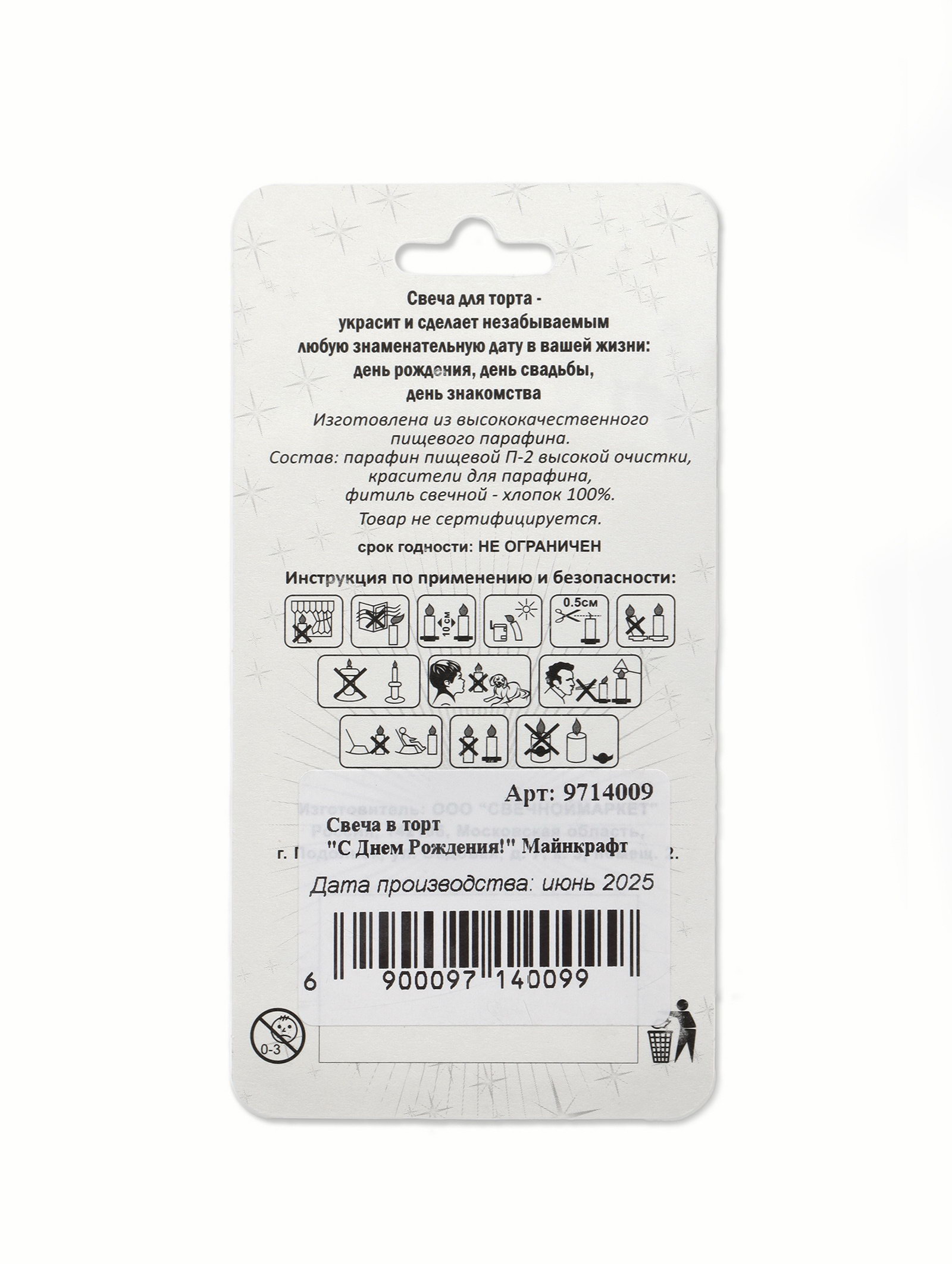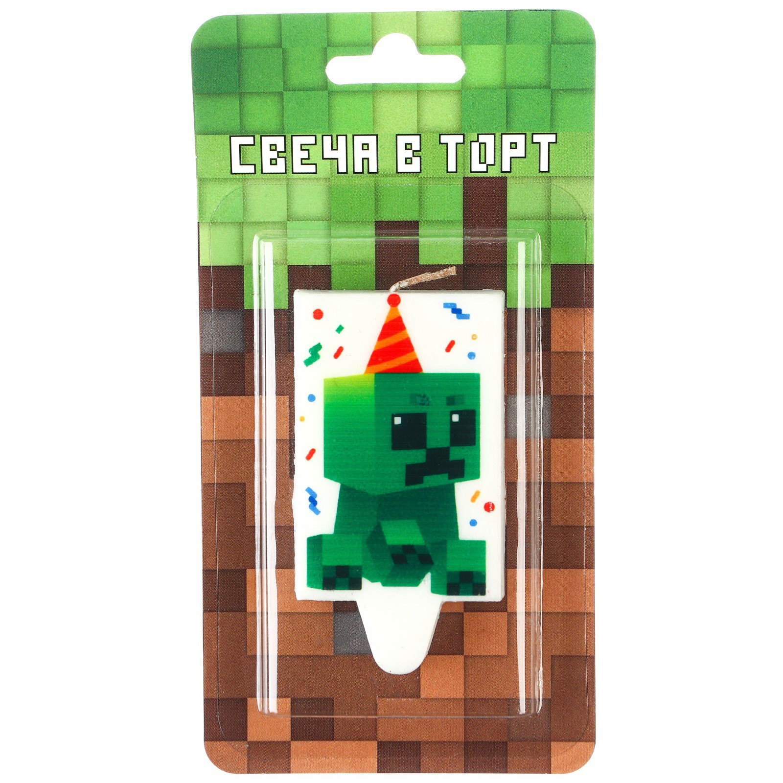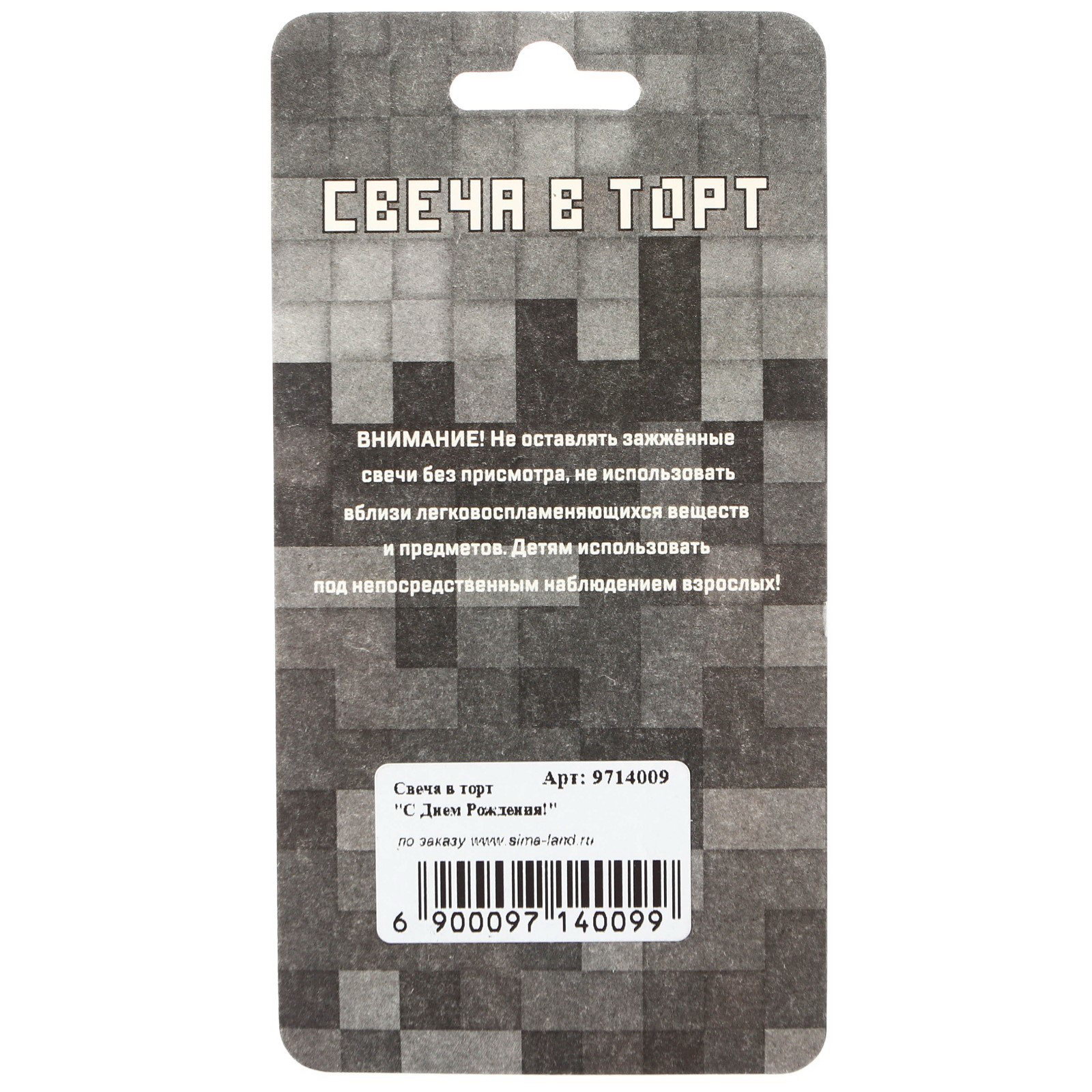 Свеча в торт "С Днем Рождения!", Майнкрафт. 4.5х8.4 см, Страна Карнавалия, Китай