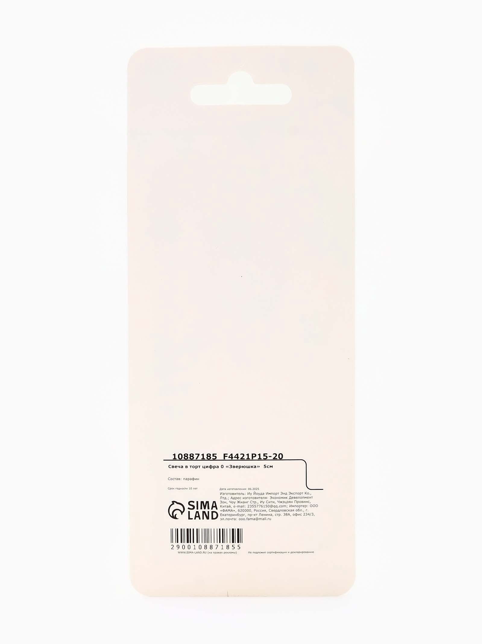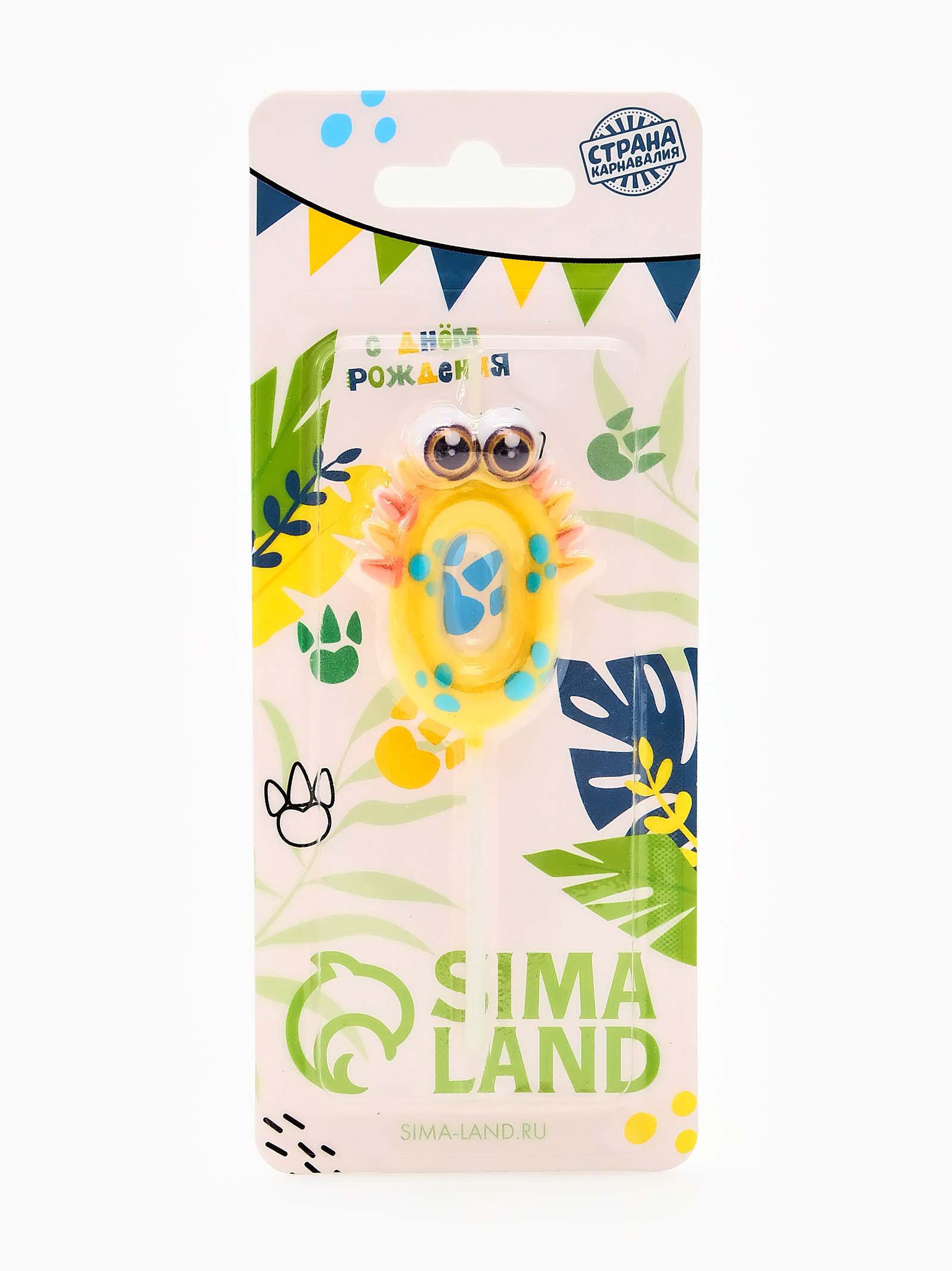 Свеча для торта цифра 0 "Зверюшка", 5 см, 7x17x0.8 см., Страна Карнавалия, Китай