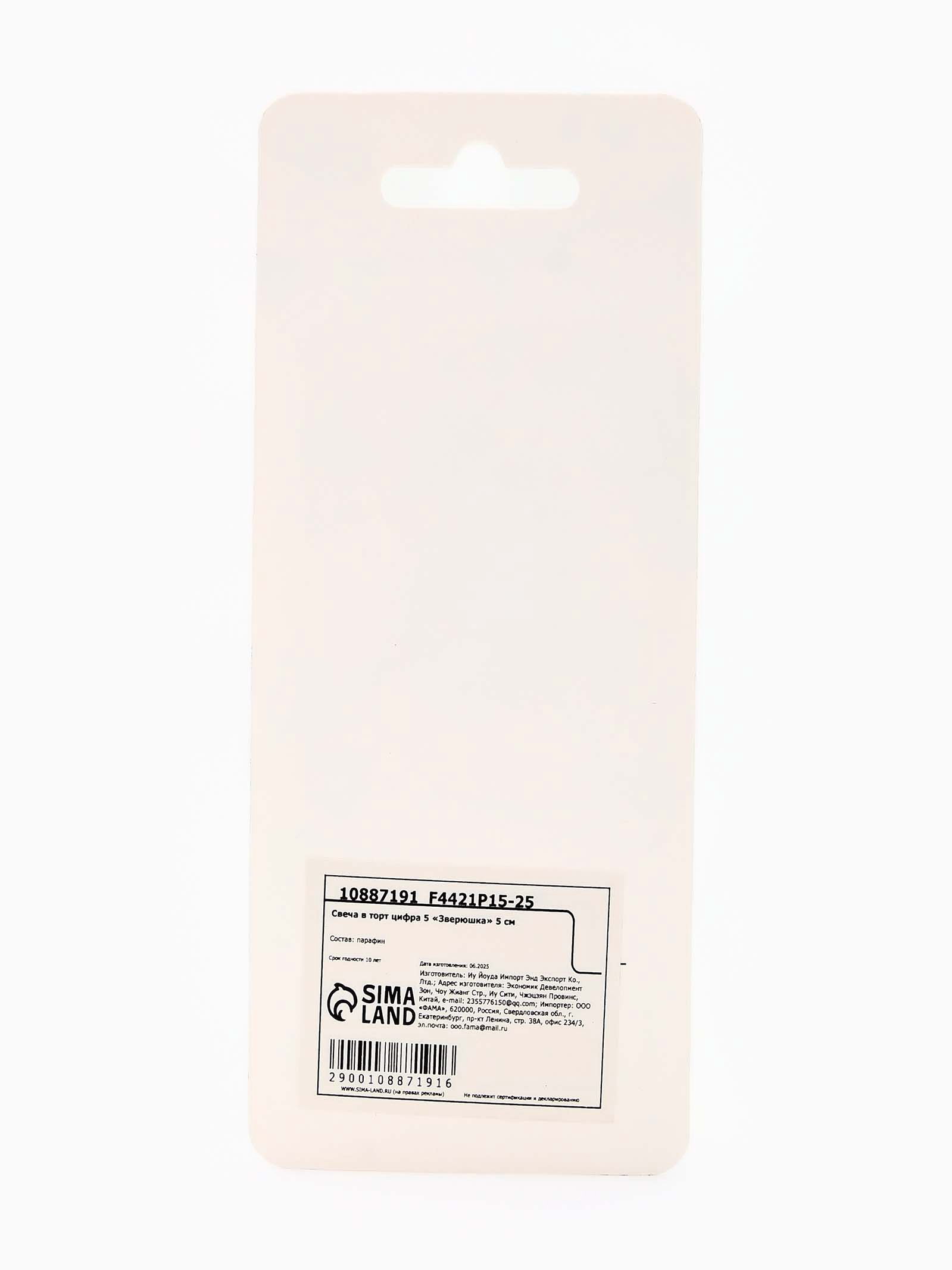 Свеча для торта цифра 5 "Зверюшка", 5 см, 7x17x0.8 см., Страна Карнавалия, Китай