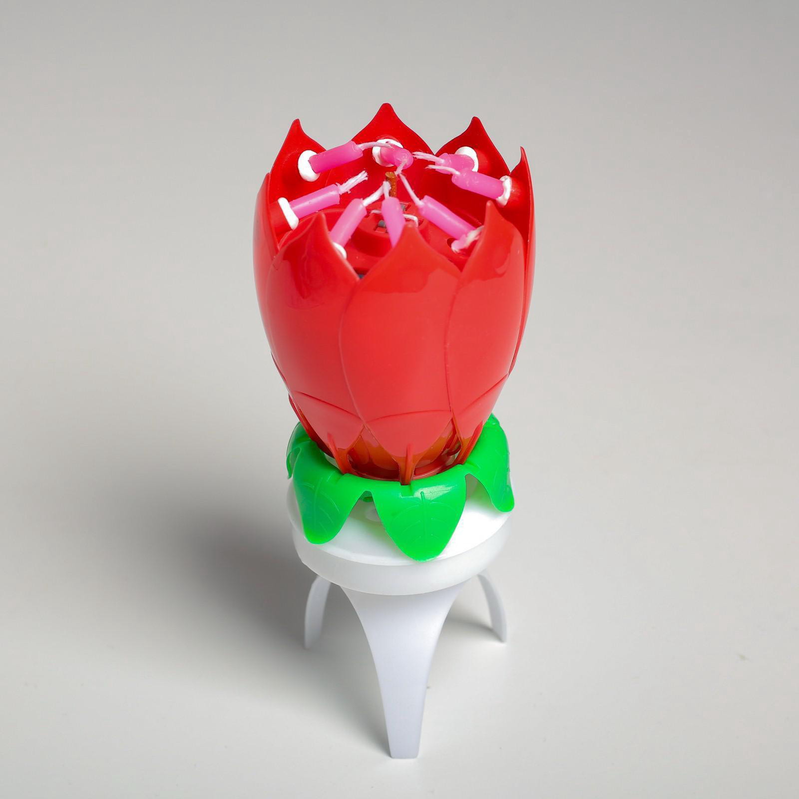 Свеча для торта музыкальная "Тюльпан", крутящаяся, красная, 14.5x6 см, 6x6x14.5 см., Страна Карнавалия, Китай
