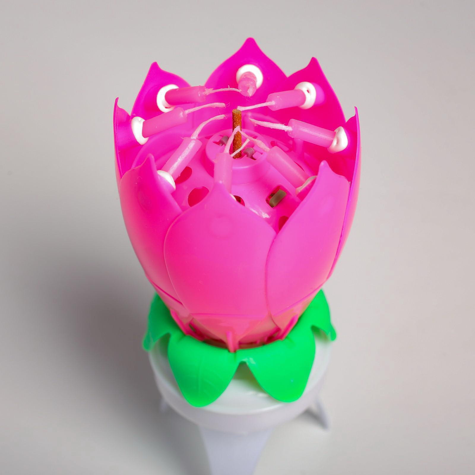 Свеча для торта музыкальная "Тюльпан", крутящаяся, розовая, 14.5x6 см, 6x6x14.5 см., Страна Карнавалия, Китай