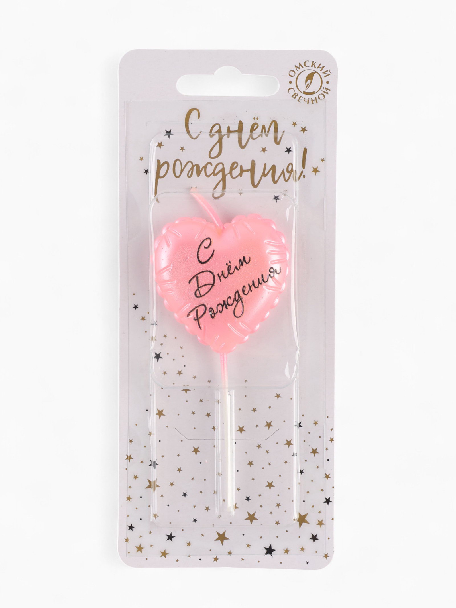 Свеча в торт "С днем рождения", розовая, Омский свечной завод, Россия