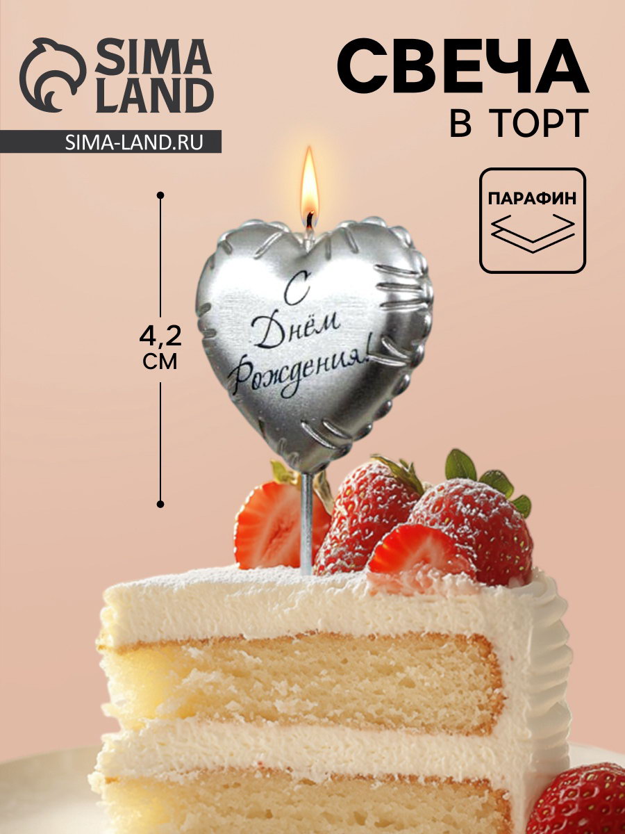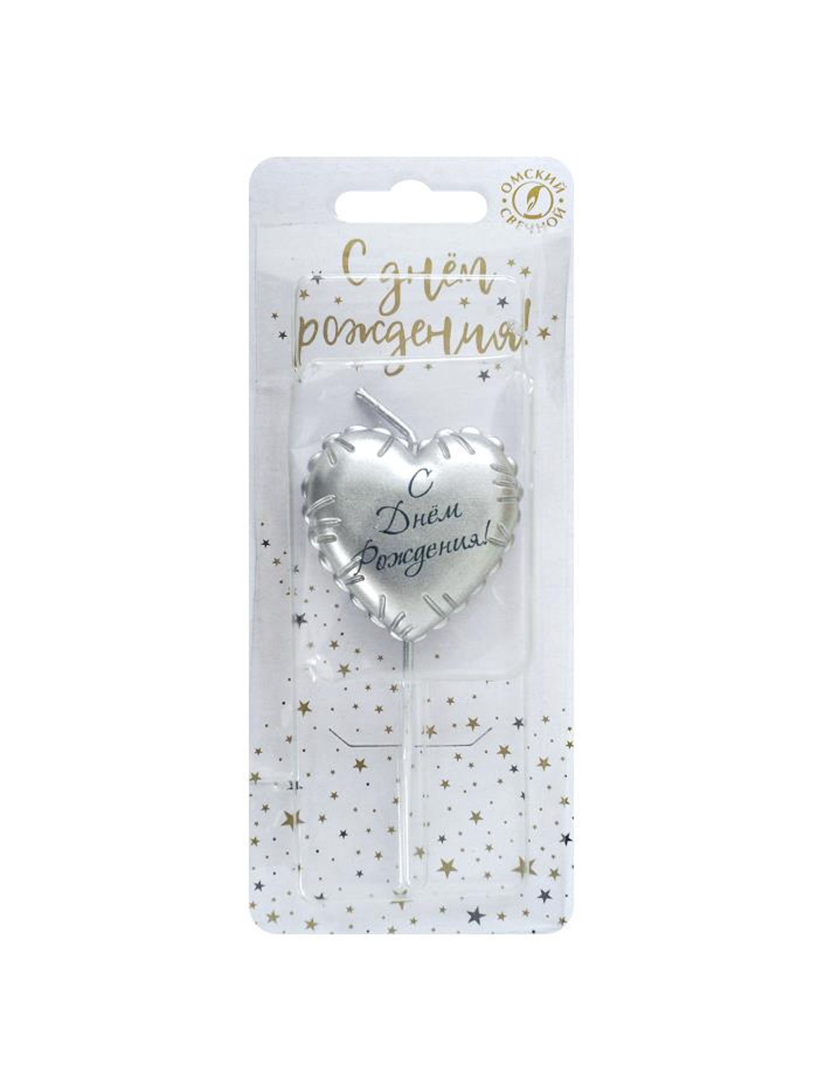 Свеча в торт "С днем рождения", серебряная, Омский свечной завод, Россия