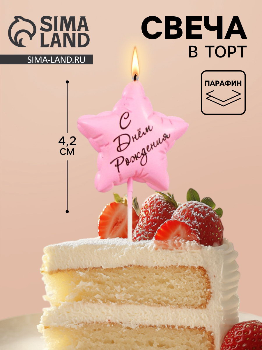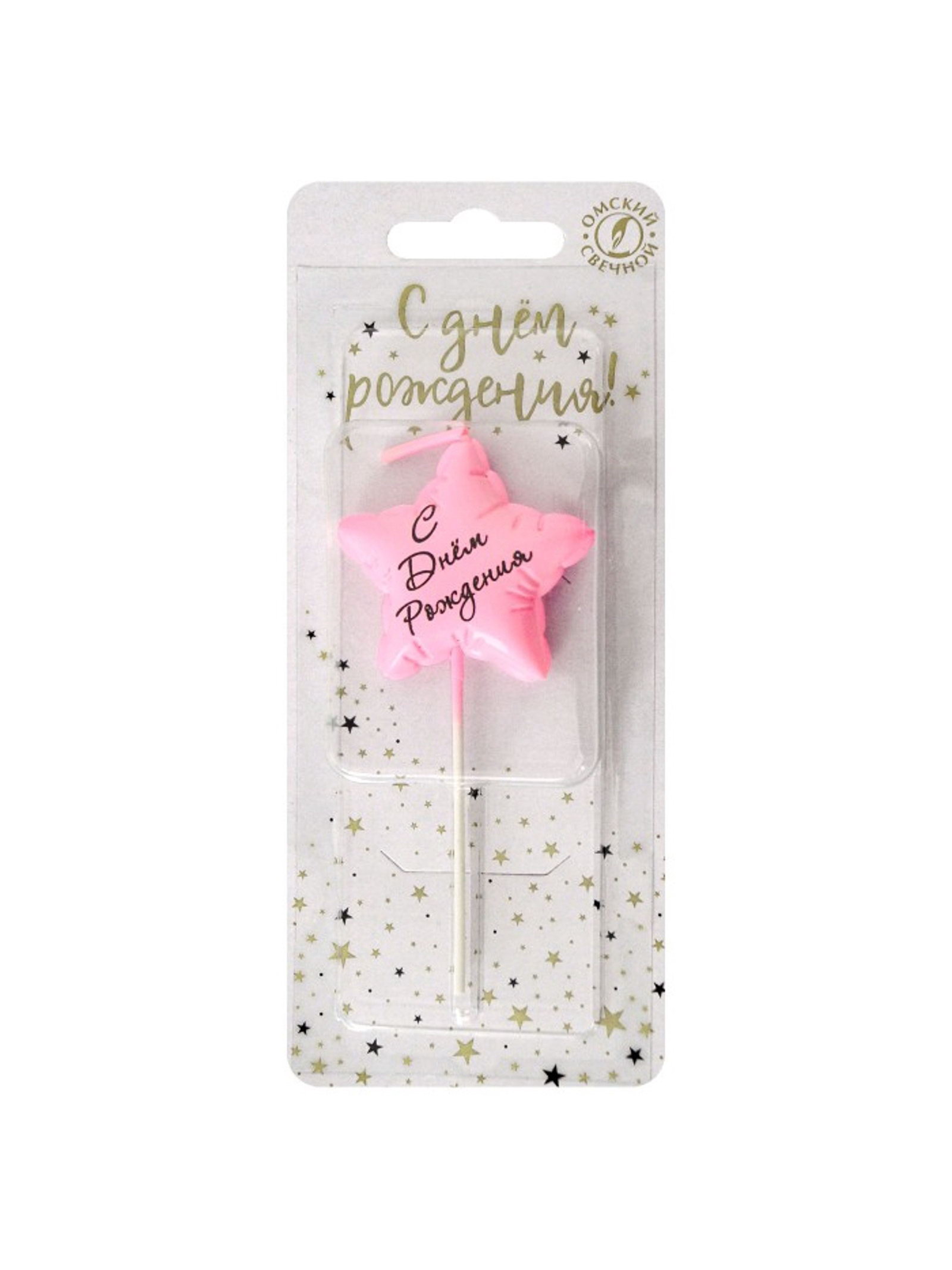 Свеча в торт "С днем рождения", розовая, Омский свечной завод, Россия