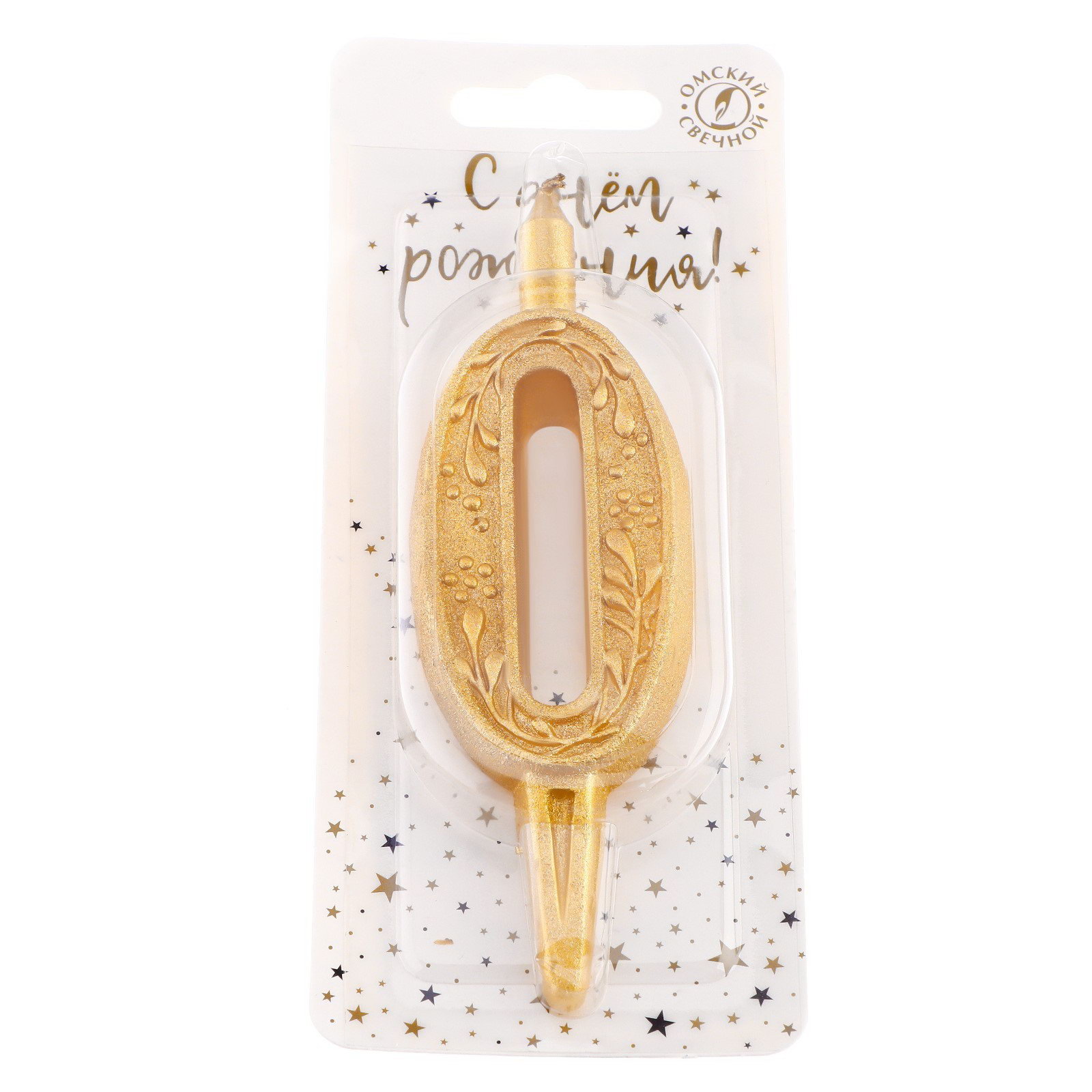 Свеча для торта цифра "Золотой узор", 10.2 см, цифра 0, Омский свечной завод, Россия