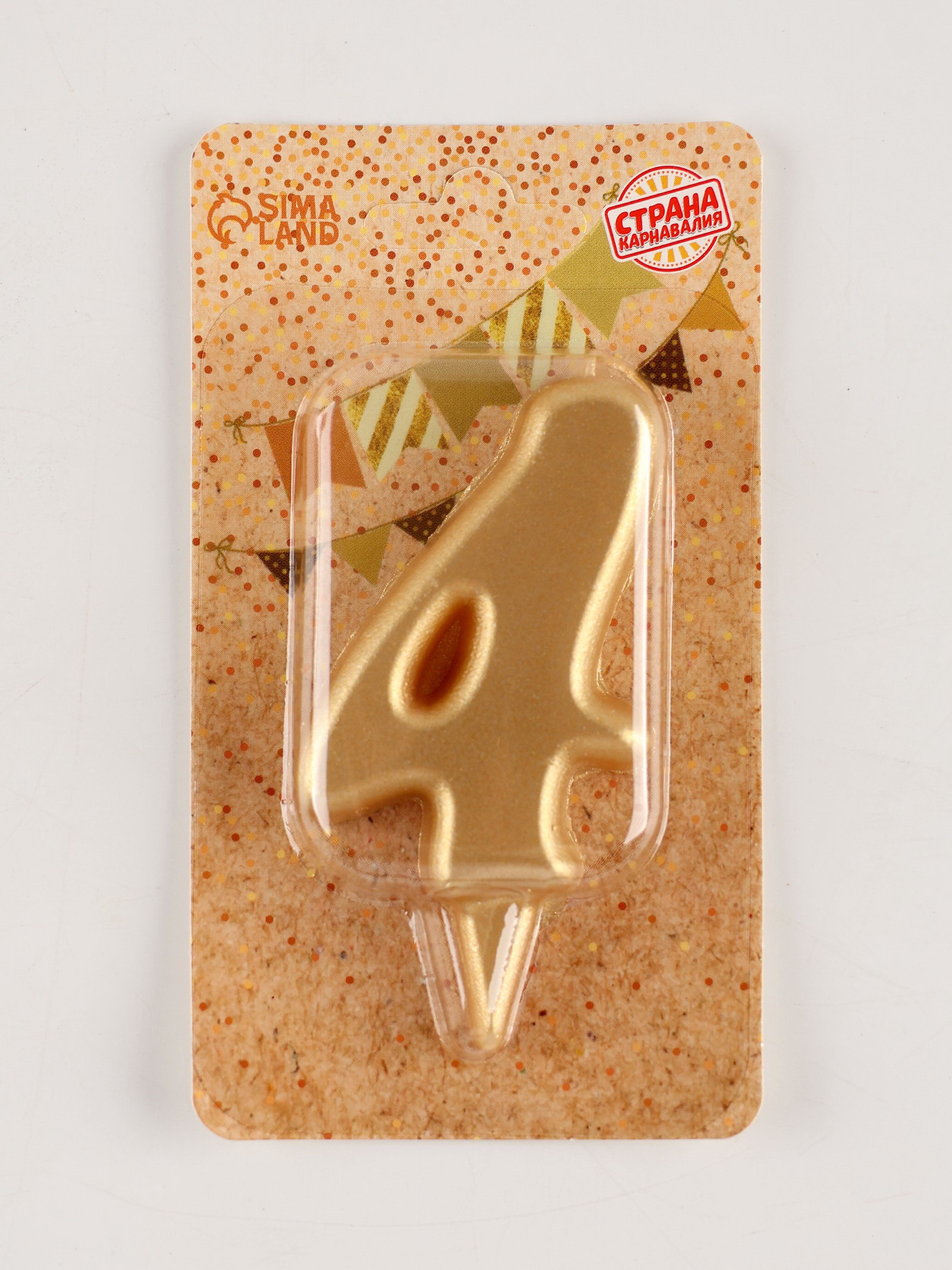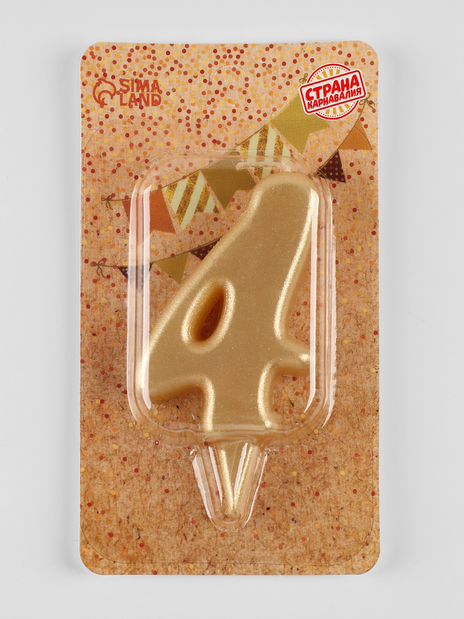Свеча для торта "Цифра 4", золотая, 5.5 см, Страна Карнавалия, Россия