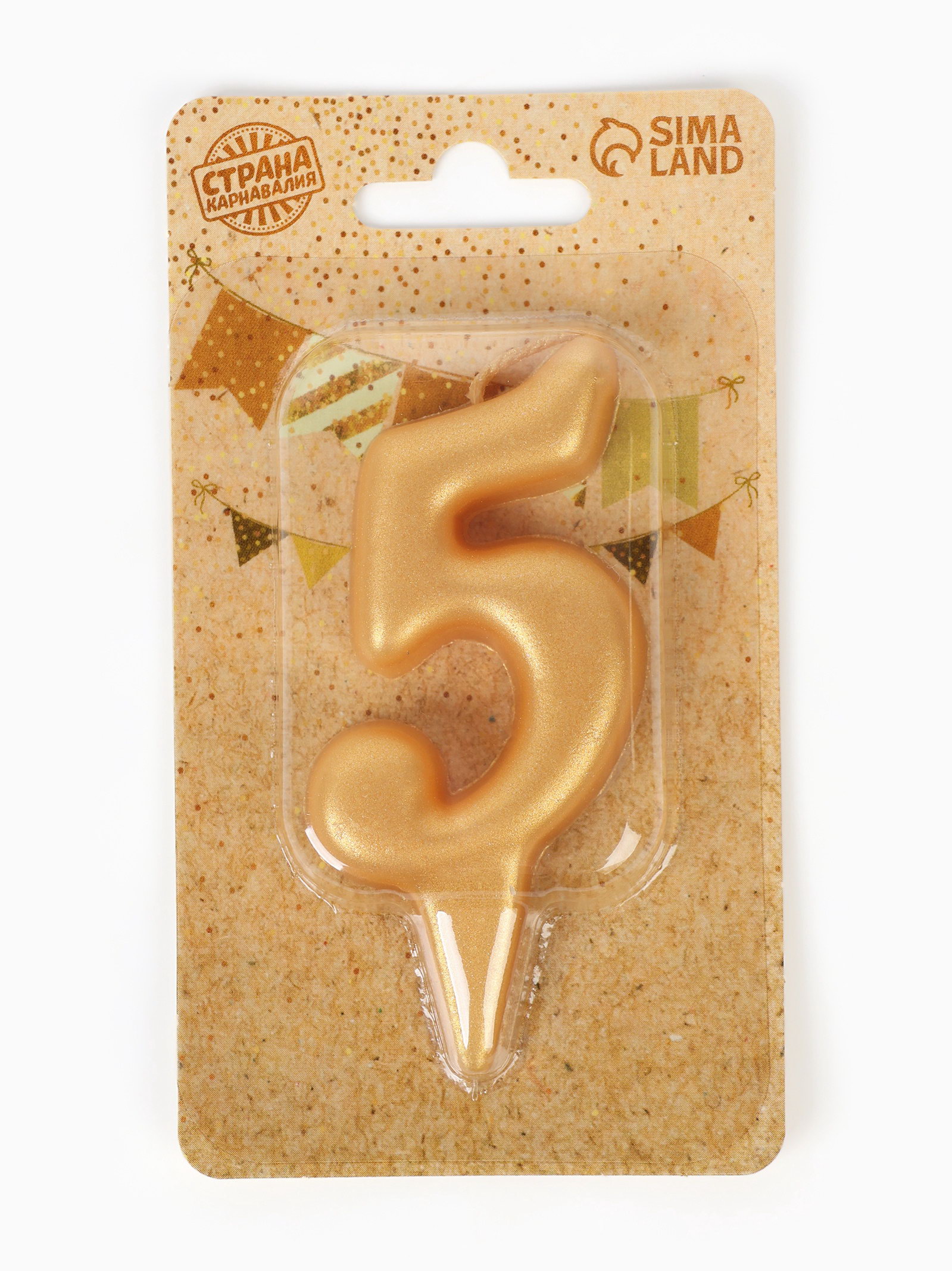 Свеча для торта "Цифра 5", золотая, 5.5 см, Страна Карнавалия, Россия