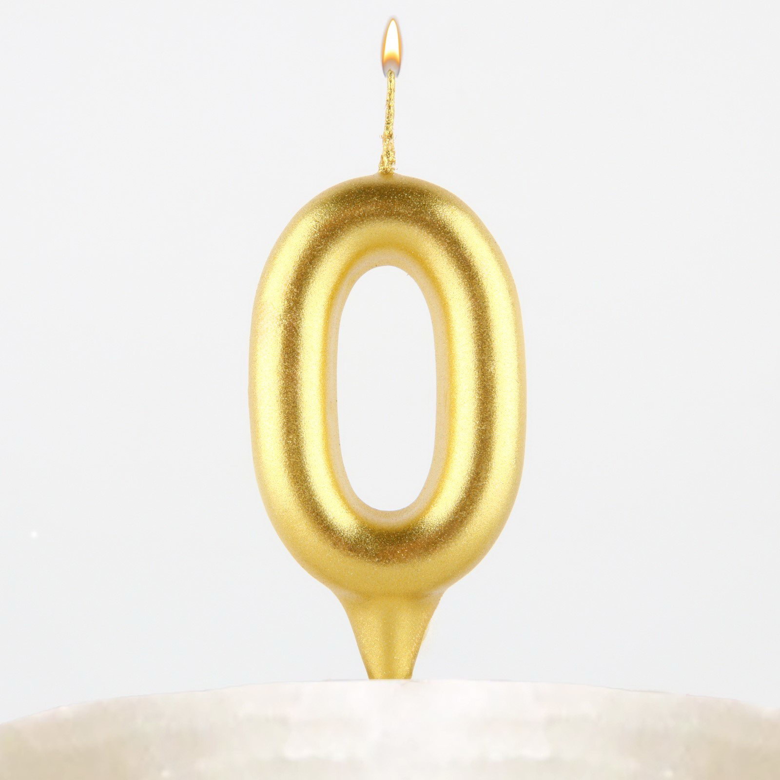 Свеча для торта, цифра "0", золото, 3 x 6 см, 7x14x0.9 см., Страна Карнавалия, Китай