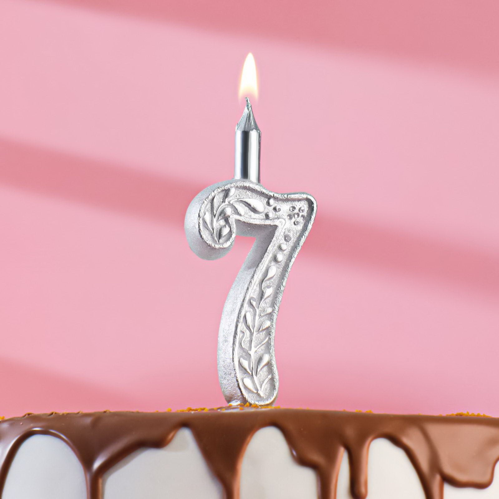 Свеча для торта цифра "Серебряный узор", 10.2 см, цифра 7, Омский свечной завод, Россия
