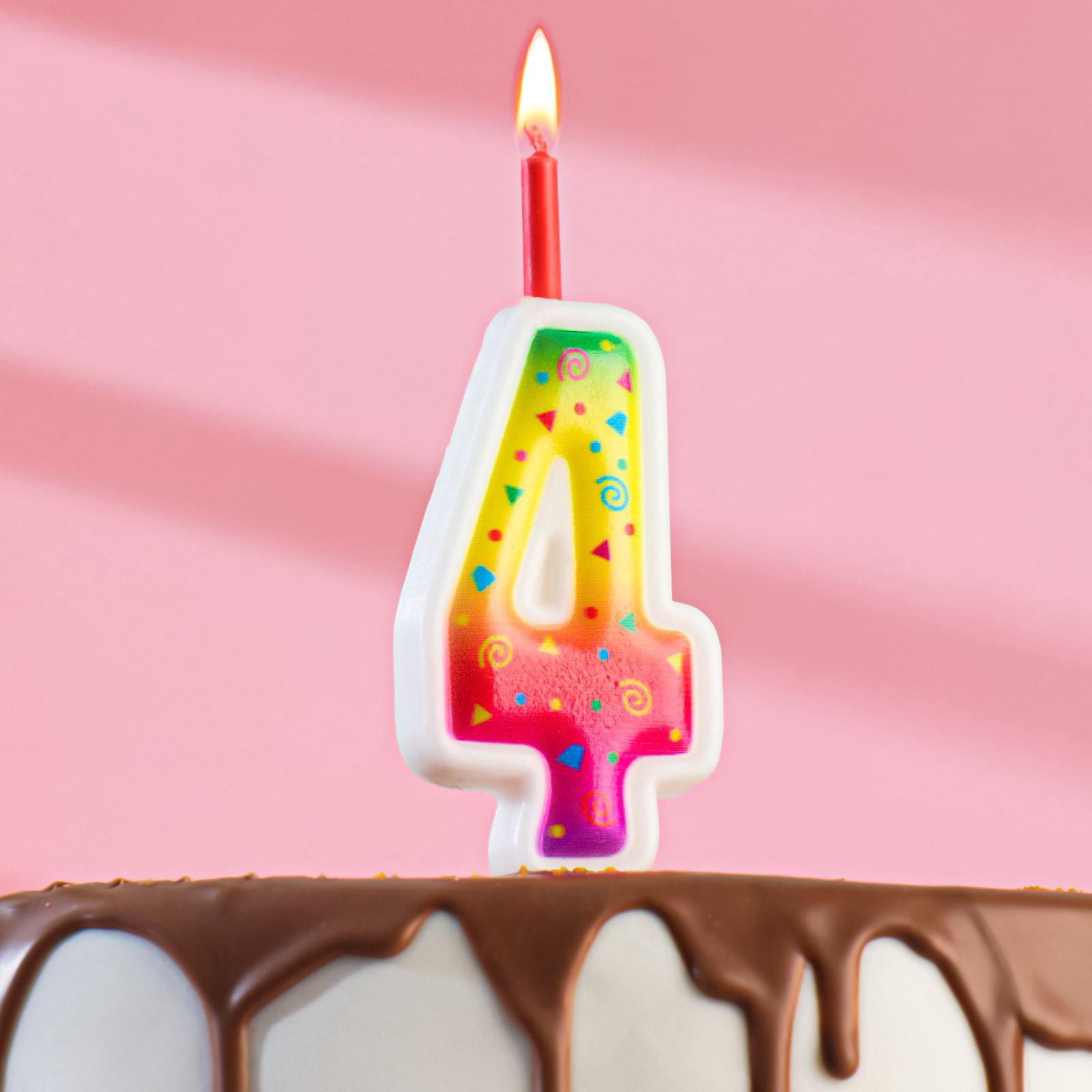 Свеча для торта с цветным пламенем "Цифра 4", 10 см, Омский свечной завод, Россия