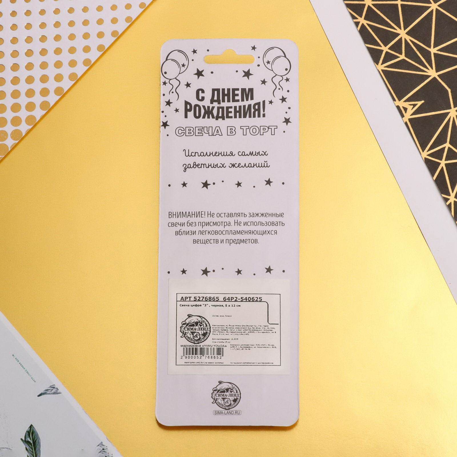 Свеча для торта, цифра "3", 11.5 x 2.3 см, 2.3x0.5x11.5 см., Страна Карнавалия, Китай