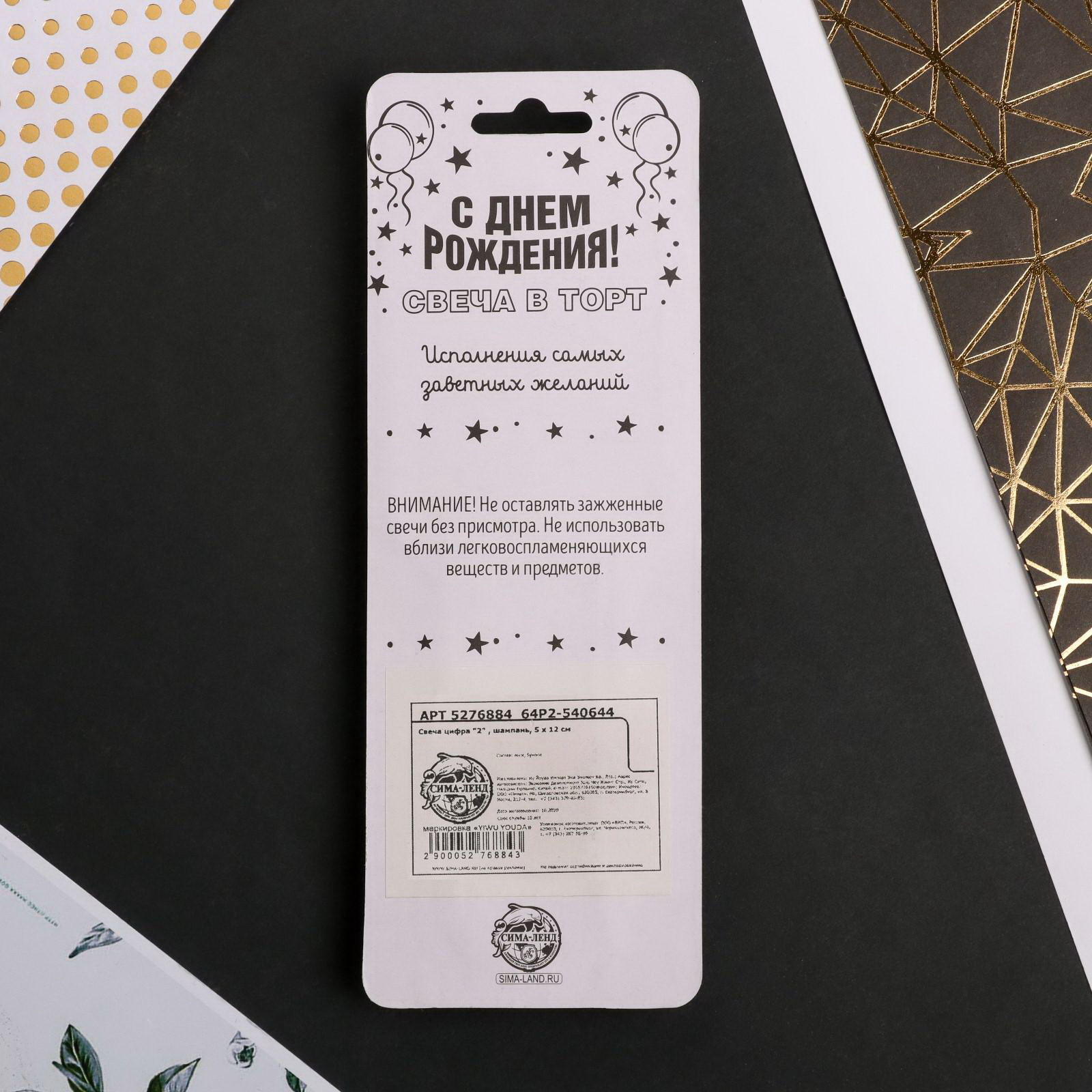 Вид упаковки: Блистер, Подложка Размер упаковки: 6 x 16.5 x 0.3 см. Высота свечи, см: 11.5 Цвет: Бронзовый Состав: Парафин Набор: Нет Форма свечи: Цифры tnved: 3406000000 tnved: 3406000000 Для кого: Унисекс Цифра: 2 Тематика праздника: День рождения В наборе, шт.: 1 Температурное ограничение: Нет Темпер. ограничение НЕ НИЖЕ ℃: -10 Темпер. ограничение НЕ ВЫШЕ ℃: +25 Свечи для торта на День рождения - неотъемлемая часть праздника. Украсьте угощение свечами, чтобы сделать особенный день в году ещё более ярким и незабываемым. Ведь задувание свечей вызывает бурные эмоции и у взрослых, и у детей, потому что в любом возрасте мы все мечтаем об исполнении желаний и для всех нас это один из самых трогательных и волшебных моментов. Яркие свечи украсят праздничный стол и создадут нужную атмосферу. Изготовлены из высокоочищенного пищевого парафина, который не влияет на вкусовые качества блюд, а удобная упаковка помогает сохранять свечи при длительном хранении и транспортировке. | ||