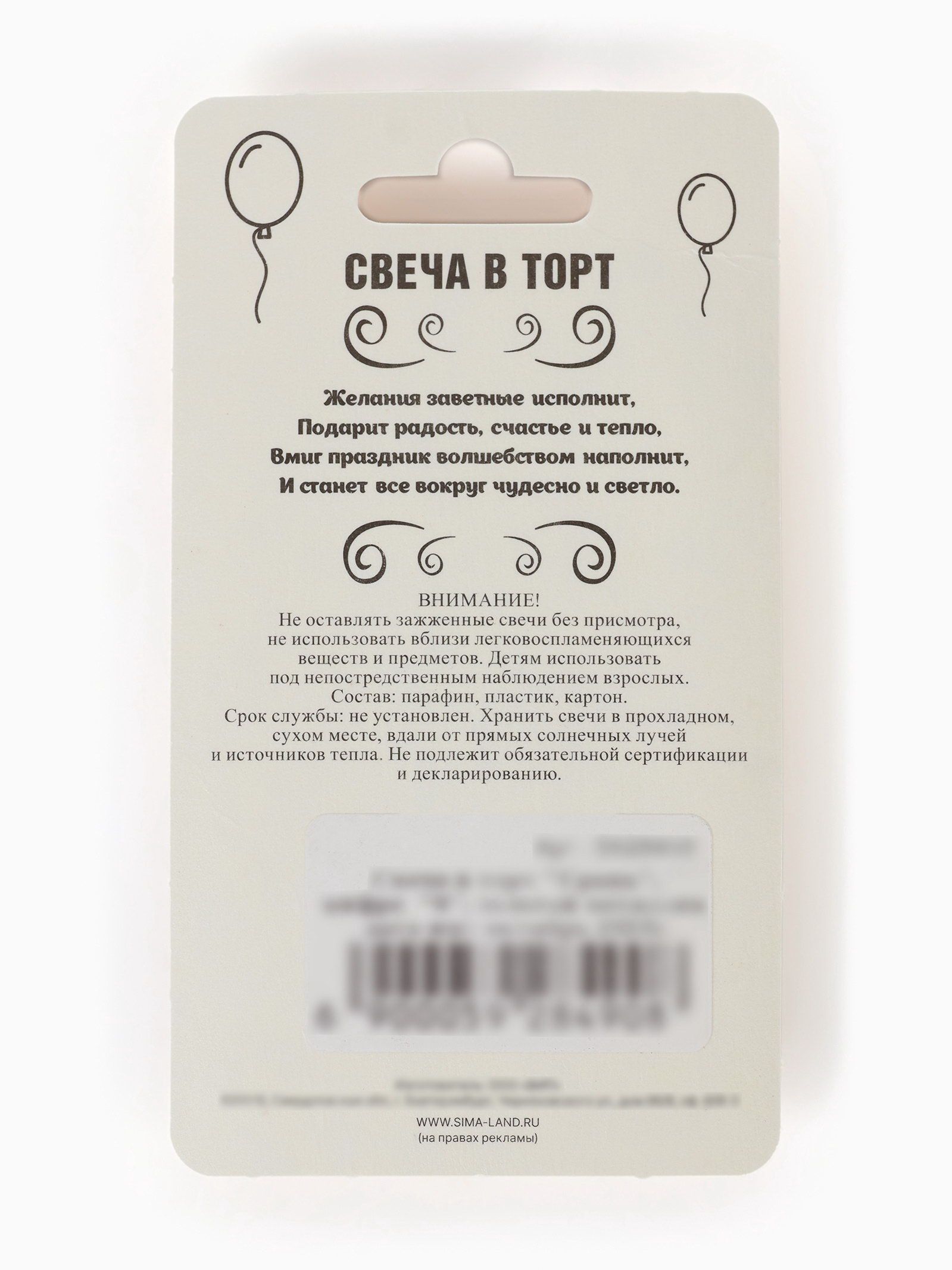 Размер упаковки: 11.5 x 1.2 x 6.5 см. Состав: Парафин Для кого: Унисекс Форма свечи: Цифры В наборе, шт.: 1 tnved: 3406000000 Набор: Нет Температурное ограничение: Нет Цифра: 6 Высота свечи, см: 7.8 Цвет: Золотистый Высота свечи без шпажки, см: 6.5 Уважаемые клиенты! В связи с наступлением осенне-зимнего периода напоминаем Вам, что на свечах с лаковым покрытием от резких перепадов температур или при низкой температуре (ниже – 20С) может отслоиться (вздуться) лак. Явление носит, как правило, обратимый характер. При транспортировке в зимнее (холодное) время года коробки со свечами вскрывать после того, как они постоят на Вашем теплом складе не менее суток. Важно! В настоящее время в продажу поступают два вида свечей. Второй вариант имеет более сглаженные рёбра, во избежание образования сколов при транспортировке. Сама форма свечи осталась без изменений. Несколько праздников – одно решение. Свечи-цифры – это отличный способ подчеркнуть важную дату или годовщину значимого события: день рождения, годовщина со дня бракосочетания, юбилей кота, празднование по поводу нескольких лет со дня основания фирмы. Свечи подойдут для торта, пирога, капкейка, мороженого или любого другого десерта. Создавайте свой уникальный декор. Комбинируйте цифры, сочетайте между собой различные стилистические решения. | ||