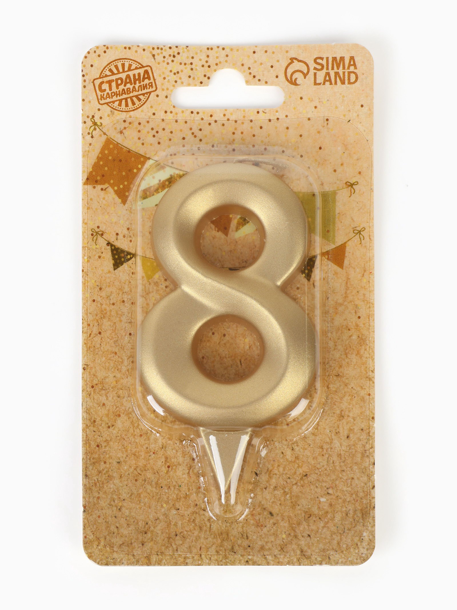 Свеча в торт "Цифра 8", золотая, 6.5 см, Страна Карнавалия, Россия