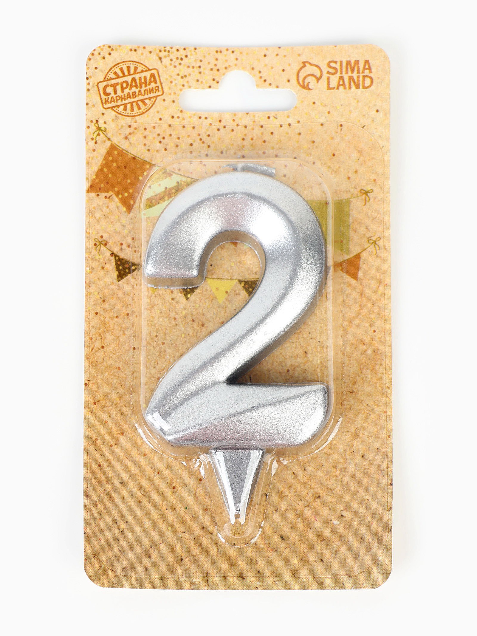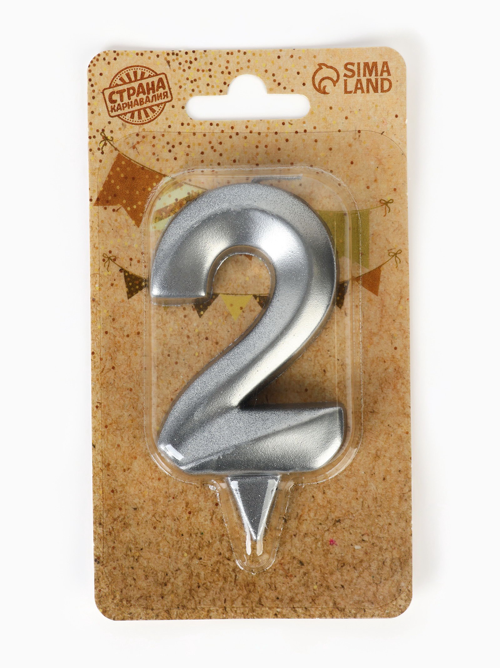 Свеча в торт "Грань", цифра 2, серебряный металлик, 6.5 см, Страна Карнавалия, Россия
